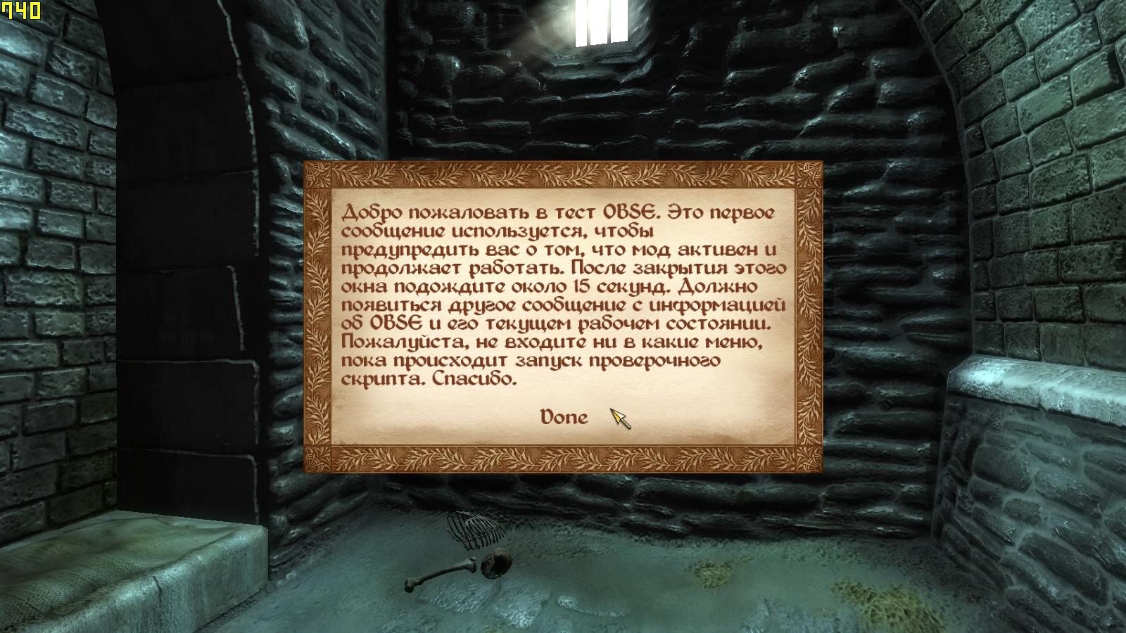 Небольшой мод, позволяющий проверить работоспособность и версию установленного OBSE.