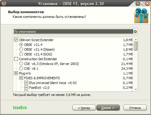 Требования: Oblivion Золотое издание. Установщик проверяет наличие соответствующей записи в реестре.