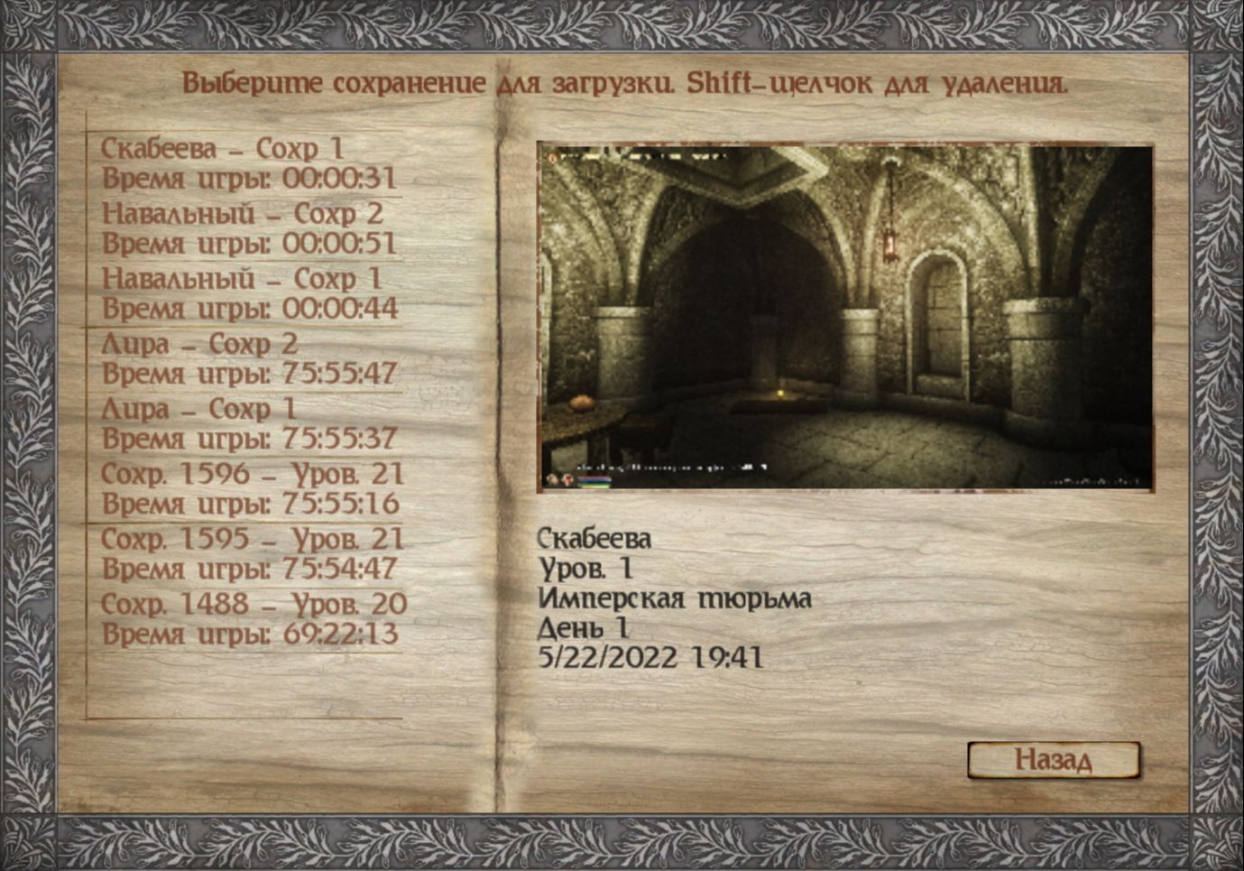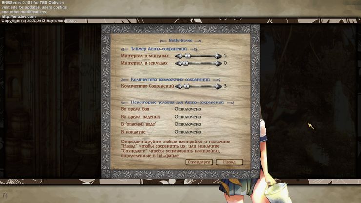 - По умолчанию модификация создаёт, самое большее, три собственных сохранения на одного персонажа. Но это тоже можно настроить.