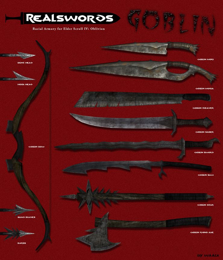 Серия плагинов Real Swords наделяет собственным оружием расы Обливиона, при использовании его представителем расы у него добавляется бонус, разный в каждом случае.