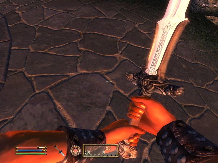 Меч Атлантов из второй саги о Конане, одноручная и двуручная версии (подключать что то одно) и найти можно в подвале часовни Скинграда.