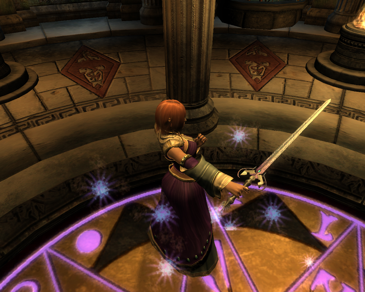 Новый необычный меч.Прототипом ему послужил клинок из игры Final Fantasy XII, название этого меча дословно означает "Спасем Королеву". Но будете ли вы спасать королев или просто рубить головы бандитам, так или иначе, клинок можно найти в магазине "Солдатская удача" (Призрачный шанс). Находится он на одной из стоек для оружия. Меч не нужно покупать, он уже является собственностью игрока.