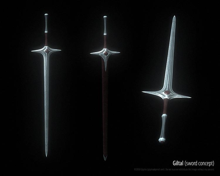 Плагин добавляет красивый клинок под названием «Гилтал». Меч будет добавлен в инвентарь при загрузке сохранения или начале новой игры. Гилтал можно использовать в одноручном и двуручном режиме, изменить режим возможно с помощью специального заклинания, добавляемого игроку вместе с клинком.