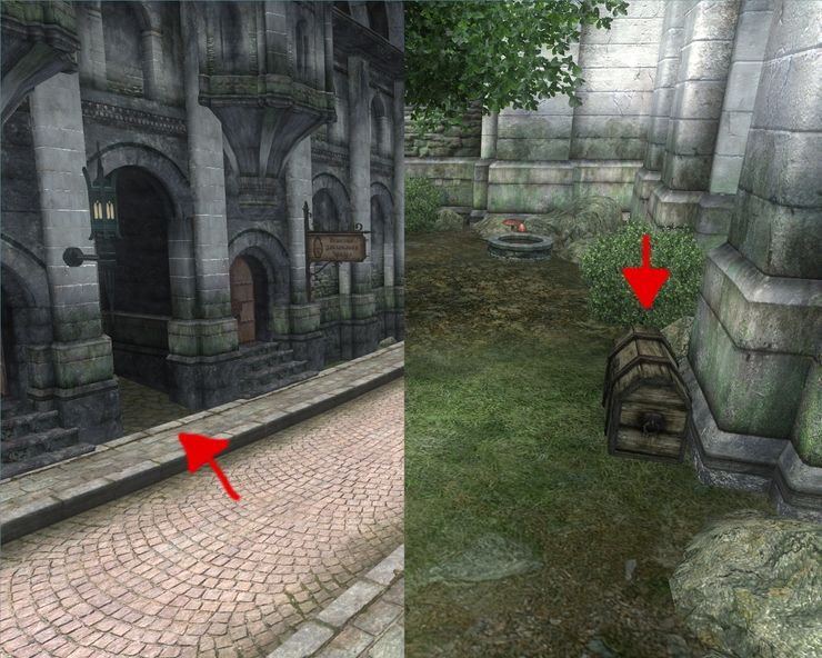 Найти всё это можно в сундуке, в небольшой аллее напротив статуи, находящейся у магазина "Бей и круши", что в Торговом районе Имперского города (см. скриншот).