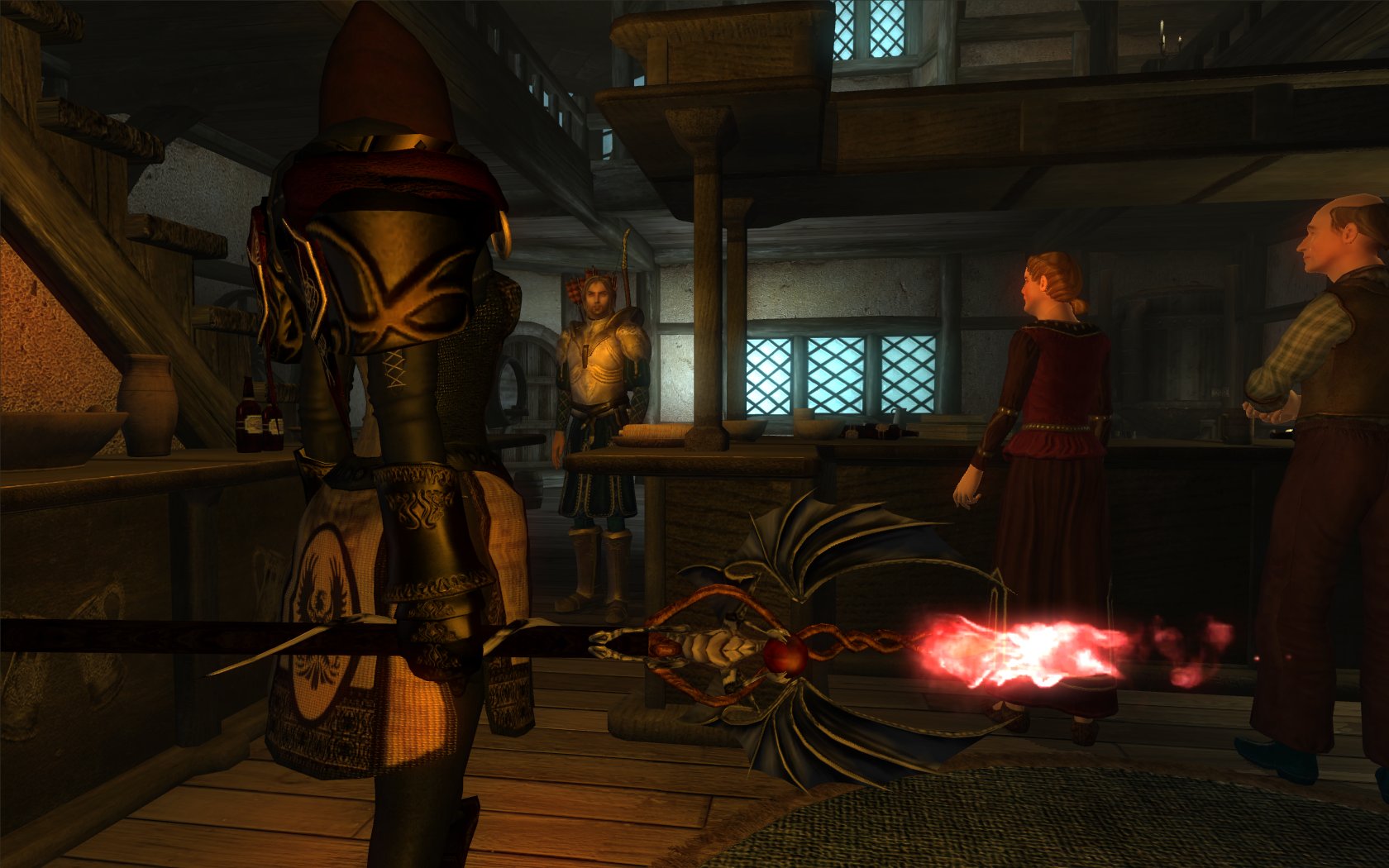 Nehrim - в таверне Эрофина "Разговорчивый путешественник", посох находится над огнем.