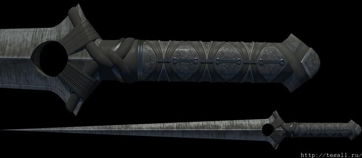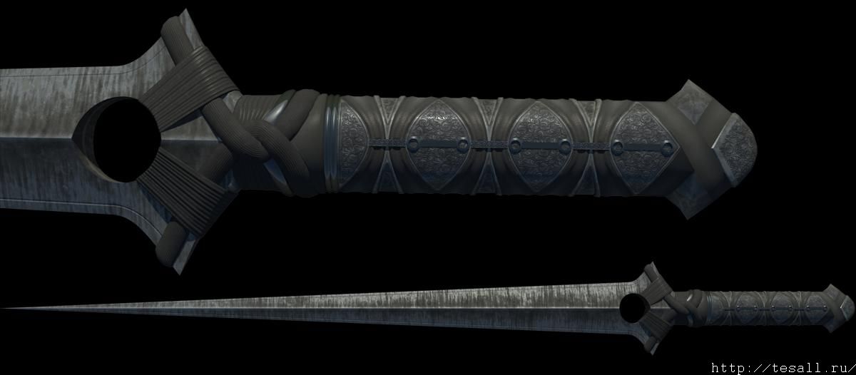 Дополнительный файл (2к на 2к) -текстура клинка 2к на 2к, текстура рукояти 2к на 2к.