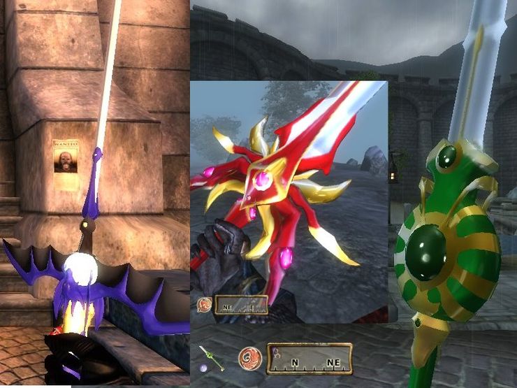 Добавляет артефактные клинки, найти их можно решив загадки из книги Стремление Рыцаря, которая болтается в Дендрарии. Оружие стоит поисков. Новые модели текстуры и высокие свойства.