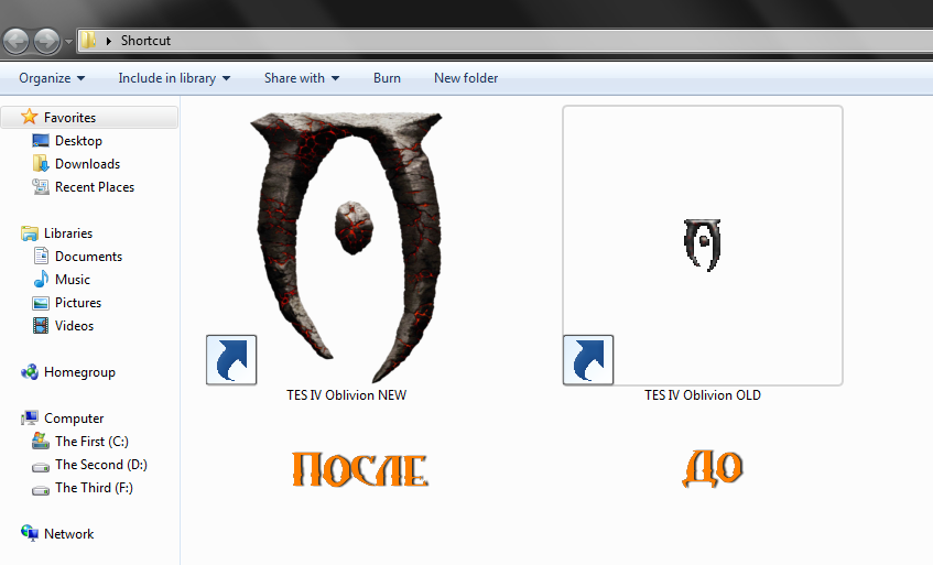 * Щелкните правой кнопкой мыши на ярлык Oblivion; выберите свойства; выберите сменить значек; выберите файл; нажмите OK.