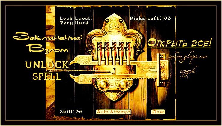 * Мод добавляет заклинание, которое открывает любую дверь или сундук.