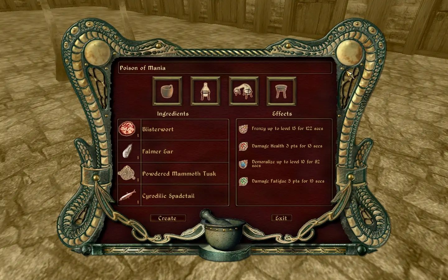 Если вы хотите, чтобы ингредиенты имели эффекты, недоступные в Oblivion (Frenzy, Demoralize и т. д.), вам необходимо добавить Magic Effects OBSE Tweaks и использовать файл ini, который есть в опциональных файлах.
