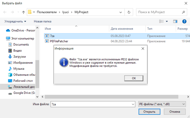 В чем отличие моей утилиты от 4Gb Patch by NTCore: 4Gb Patcher всегда расстраивал меня тем, что он совершенно не разбирается в том, какой PE-файл ты ему подсовываешь, и не производит никаких сколько-нибудь разумных проверок на этот счет - 32-битный файл, 32-битный уже пропатченный, 64-битный или старую DOS-программу, с которыми в принципе нет никакого смысла что-либо делать - он просто молчком берет любой файл в работу. Таким образом ты никогда заведомо не знаешь, нуждается ли вообще тот или иной исполняемый файл Windows в подобной модификации. Изначально я писал утилиту (для своих нужд) как своего рода придаток к 4Gb Patcher'у, чтобы она перед его использованием определяла, насколько тот или иной файл вообще нуждается в пропатчивании. Но когда достаточно разобрался со структурой формата "Portable Executable" - понял, что незачем плодить "костыли", ведь ничего особо затейливого в выставлении нужного флажка в структуре PE-файла нет. В итоге моя программа при выборе исполняемого файла Windows проверяет целесообразность его пропатчивания, уведомляет о том, что за файл выбран, и при необходимости осуществляет в нем нужные изменения.