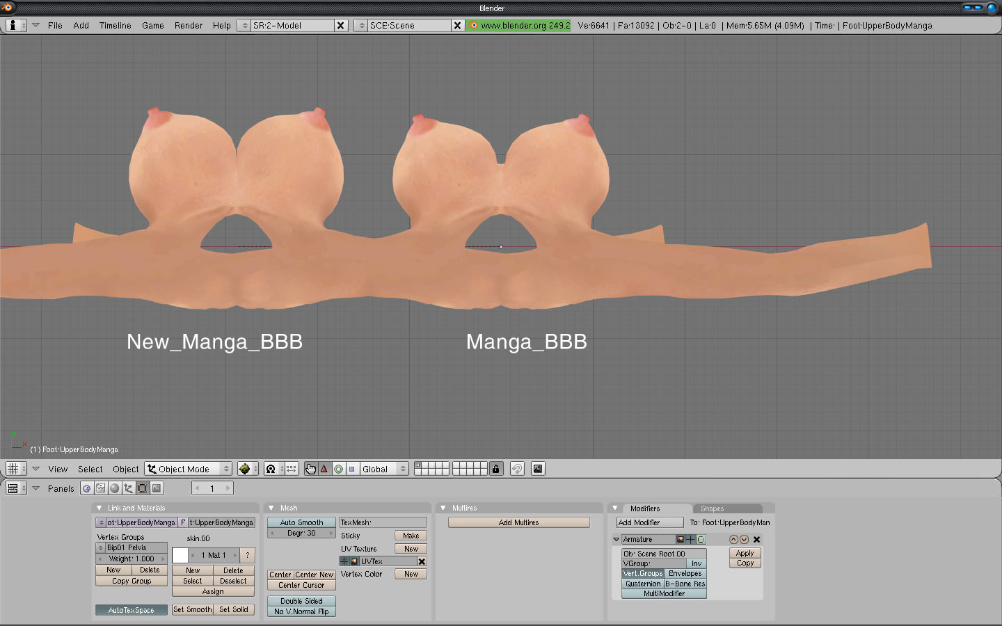 - UV mapping the skin textures to get the rounded nipples on the Fankaizhi Manga upperbody.
