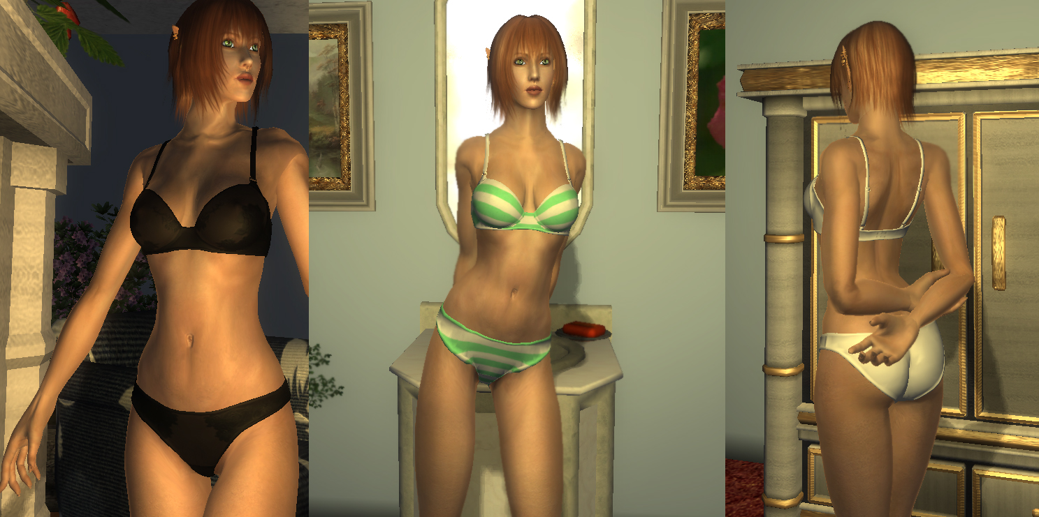 Обычные трусы, а на девок ещё и лифчики, если надоело бегать по Тамриэлю то раздеваешься и загораешь или плаваешь и т.д. Хорошая штука, можно поплавать с напарницей в лучах заката или в утренних лучах рассвета! Блеск!!!