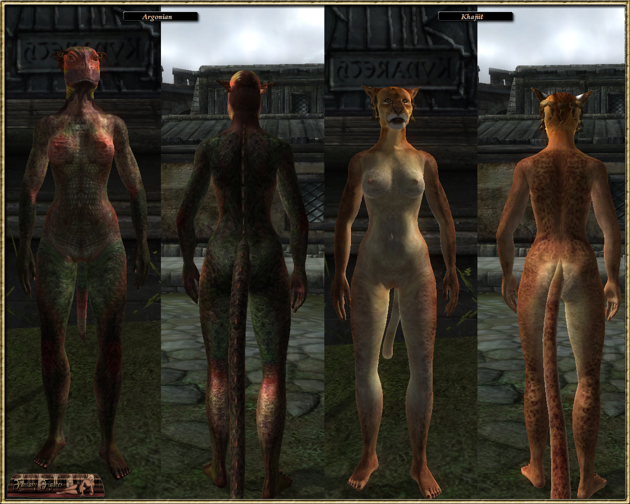 Текстуры для рас заменимы между собой внутри группы: Breton, HighElf, Imperial, Nord, RedGuard and WoodElf. Разница будет в форме интимной прически, так что вы можете выбрать текстуры по вкусу и скопировать их в папку своей расы.