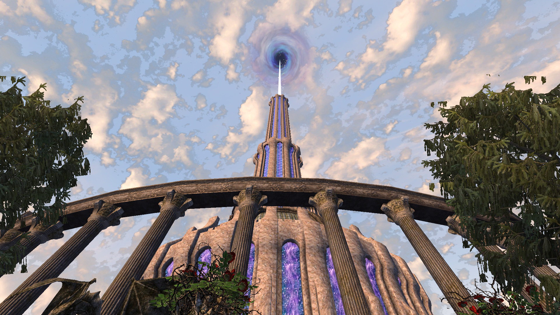 "В самом сердце города высится высокая Башня Белого Золота, стремясь к облакам. Построенная ещё во времена айлейдов, она стала символом Имперского города и всего Сиродила."