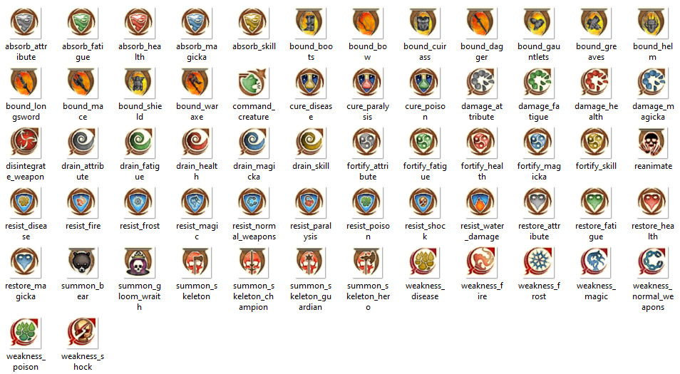 Magic Icon Variety от Gardelin(https://www.nexusmods.com/oblivion/mods/47040) как водохновителя моих собственных иконок эффектов сопротивлений;
