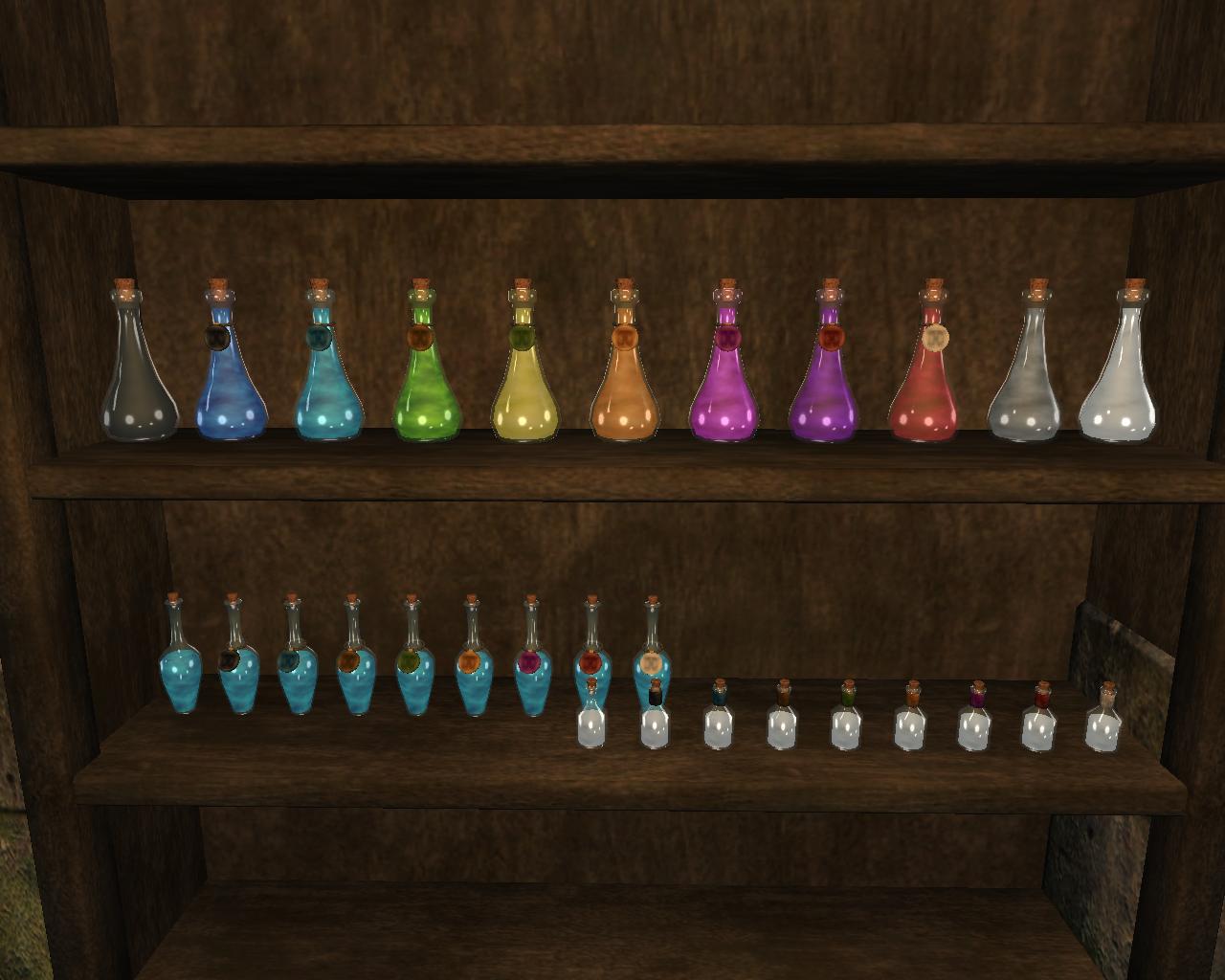Плагин-реплейсер бутылочек зелий, три размера бутылок, 11 расцветок, 8 бирок, включен вариант пустой бутылки + еще 2 уникальные модели. Итого 302 новых модели!