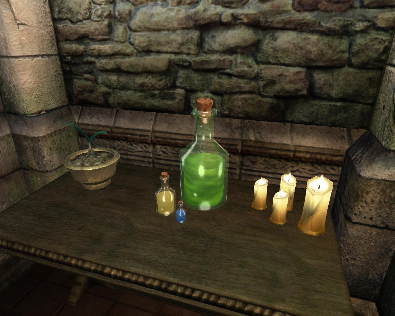 - Уникальные модели для замены potion01.nif и potionpoison.nif в папке "Дополнительно"