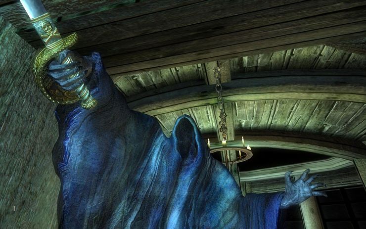 После блуждания по руинам с факелом,напоролся на привидение.До сих пор от головы не отливает.