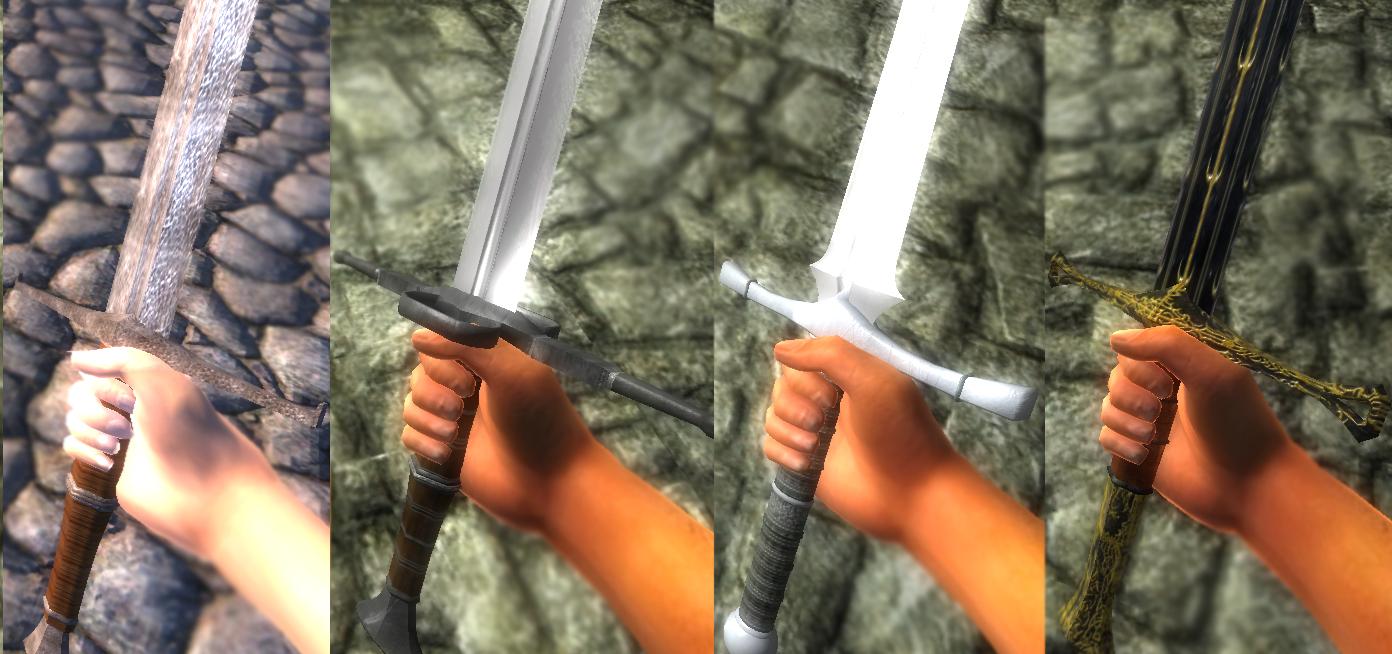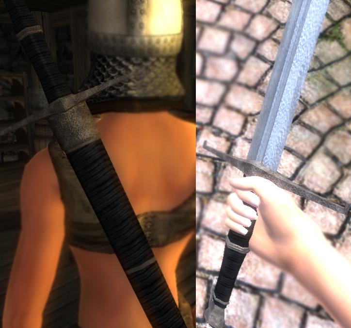 я думаю длинные мечи следует держать двумя руками, а тут на скринах не так