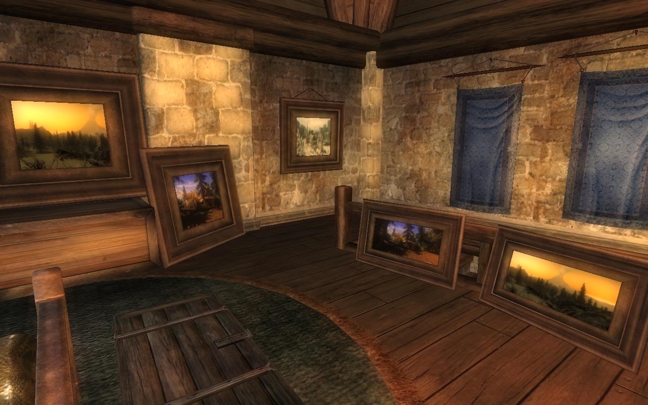 Мод заменяет все картины в игре ( кроме подарка Шанель, оставлены оригиналы ) на картины из галереи скриншотов Skyrim сайта tesall.ru cделанных пользователями этого сайта.
