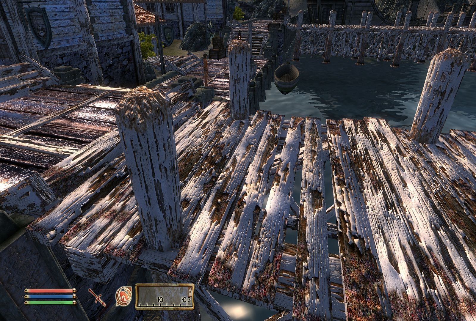 Х-м-м..., такое дело, текстура мостков(причалов), которая сидит в анвильской папке..., я так понял это дерево с выступившей морской солью что-ли... Для порта в Анвиле одно дело, но она цепляется в итоге и на речные мостки, по всему Сиродилу, а это маленько напрягает, вам не кажется? Тут бы папочка с собачкой в самый раз, я думаю.