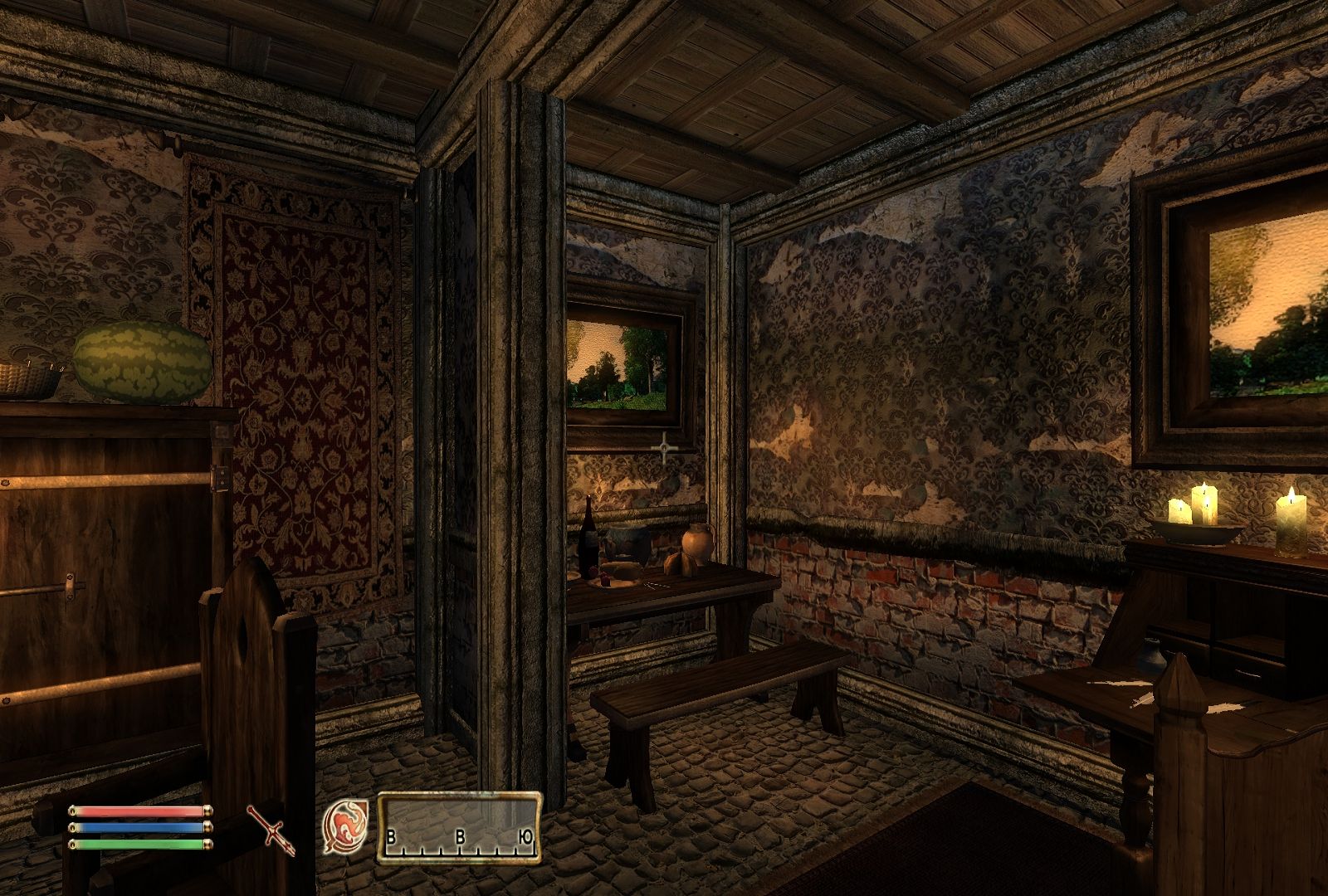 Ну и, блин, просто эти кирпичи "ты узнаешь из тысячи"... У тебя там даже, по-моему (ручаться не буду, ибо на скринах не очень-то разглядишь) кирпич для всё той же наружной кладки прилеплен на камин. Словом, ляпов хватает.