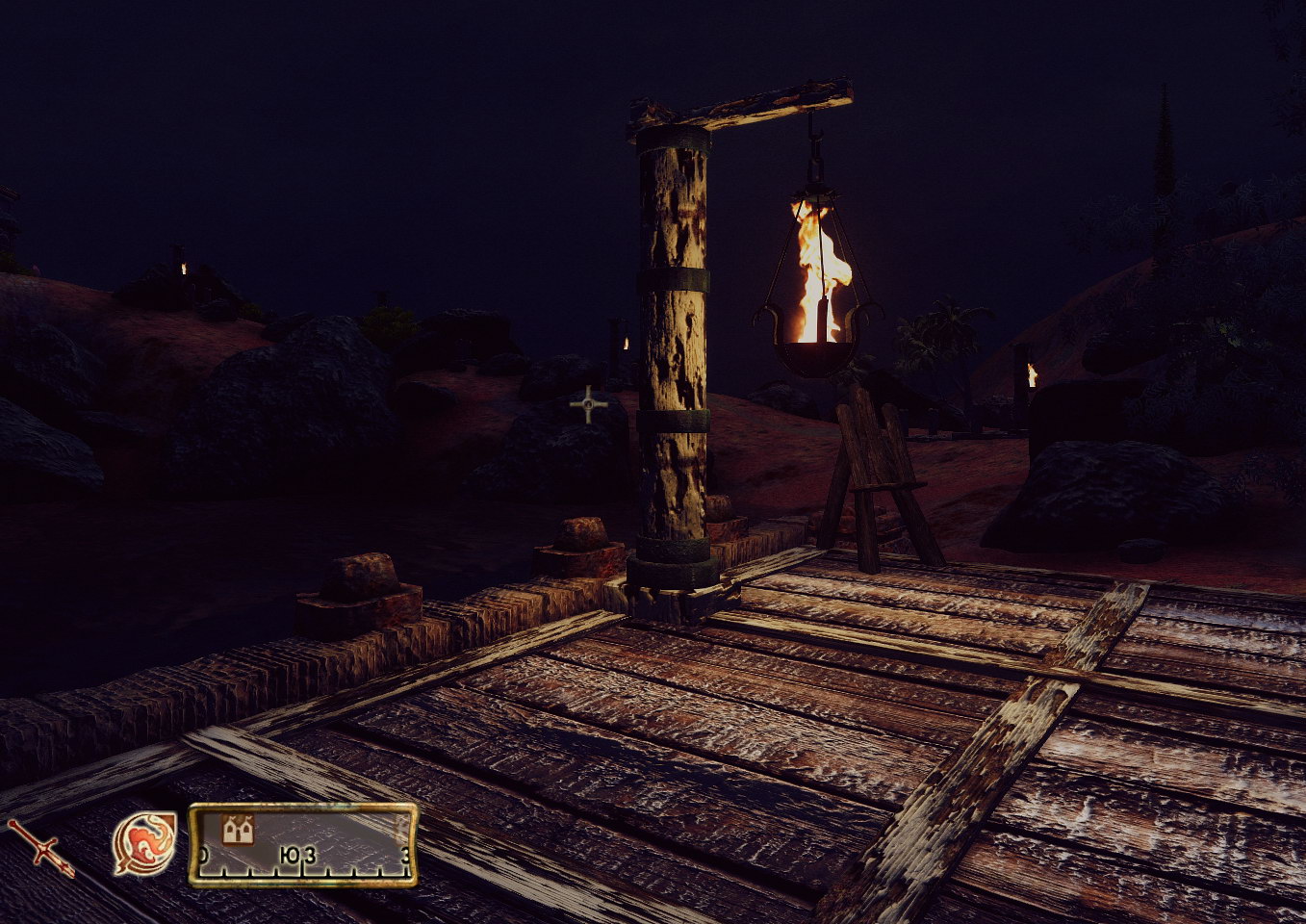 Новые модели у уличных фонарей города и пирсов. Город называется Анвил (Наковальня), именно этим навеяна форма фонарей. Фонари можно установить отдельно, для этого извлеките файлы из anvilstreetlamp.7z в вашу папку с Обливионом.