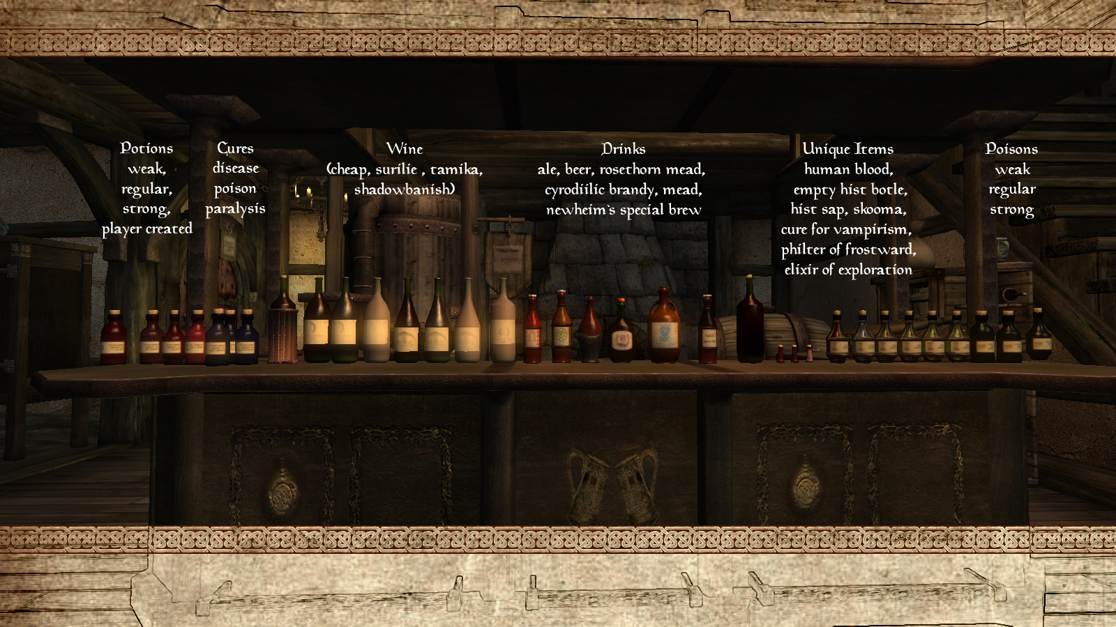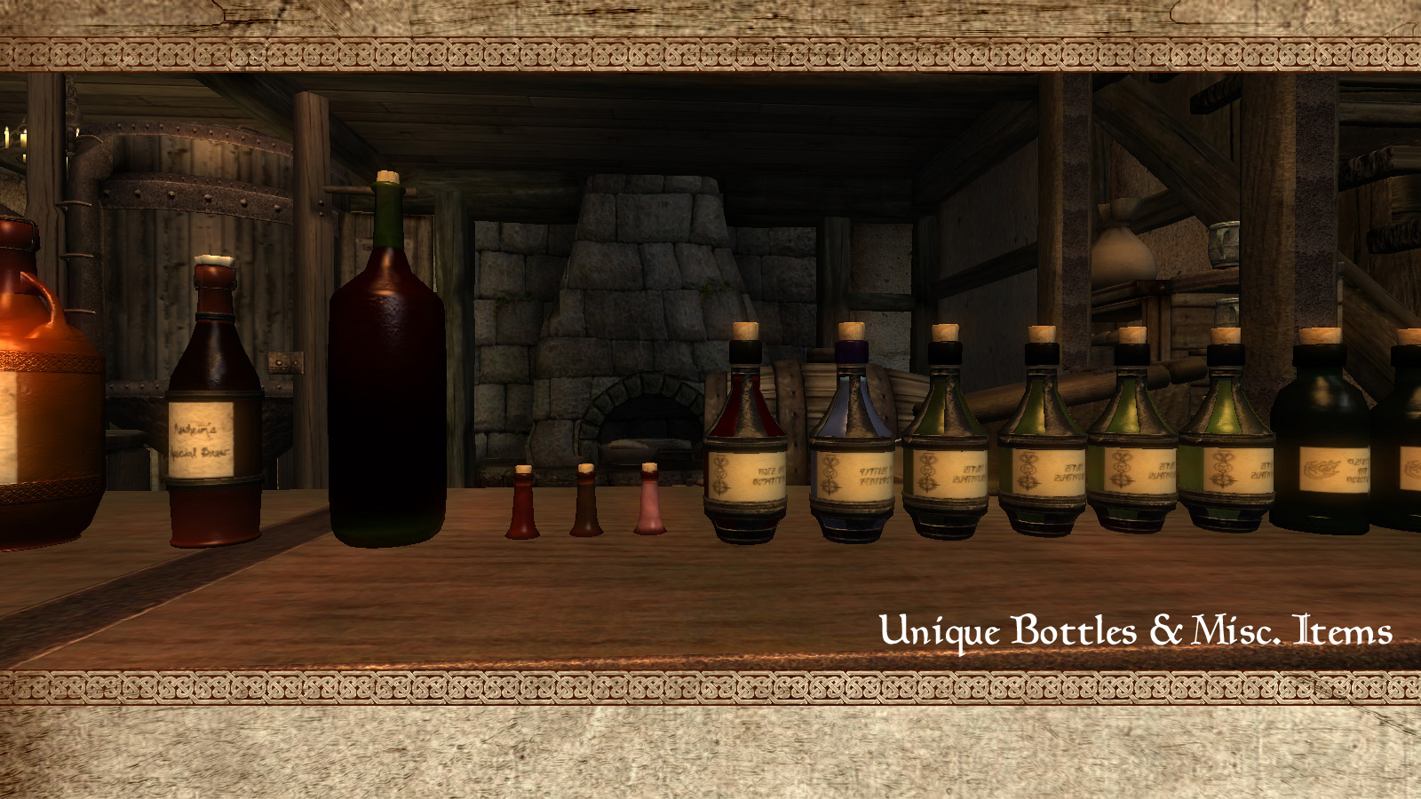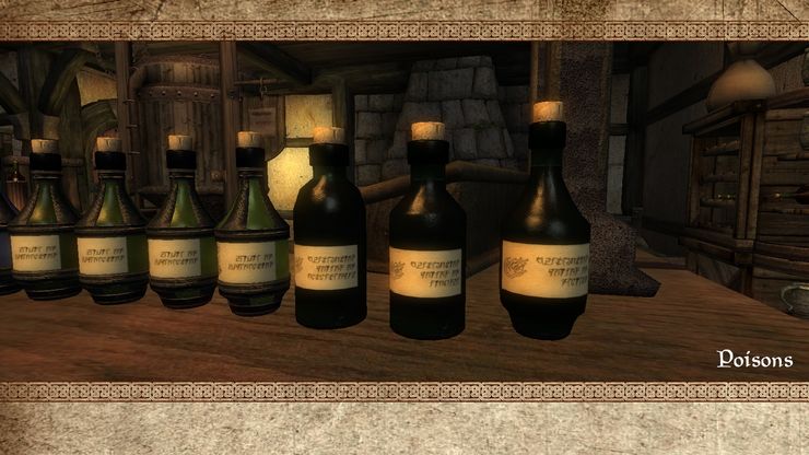 Заменяет бутылки всевозможных вин, слабоалкогольных и крепких спиртных напитков, зелий и ядов из оригинальной игры.
