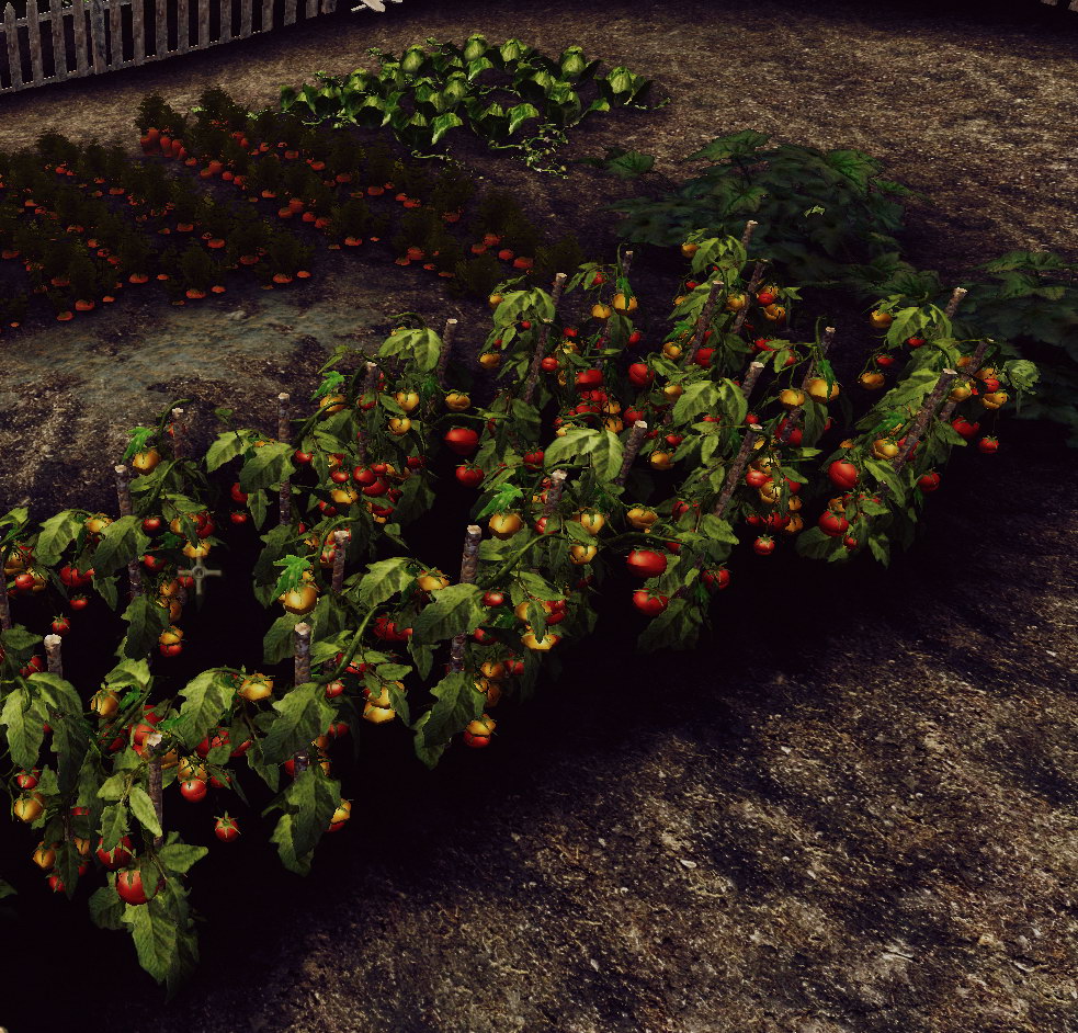 Замена моделей кукурузы, помидор, картошки, арбузной лозы, тыквенной лозы, редиса, моркови, капусты и риса.