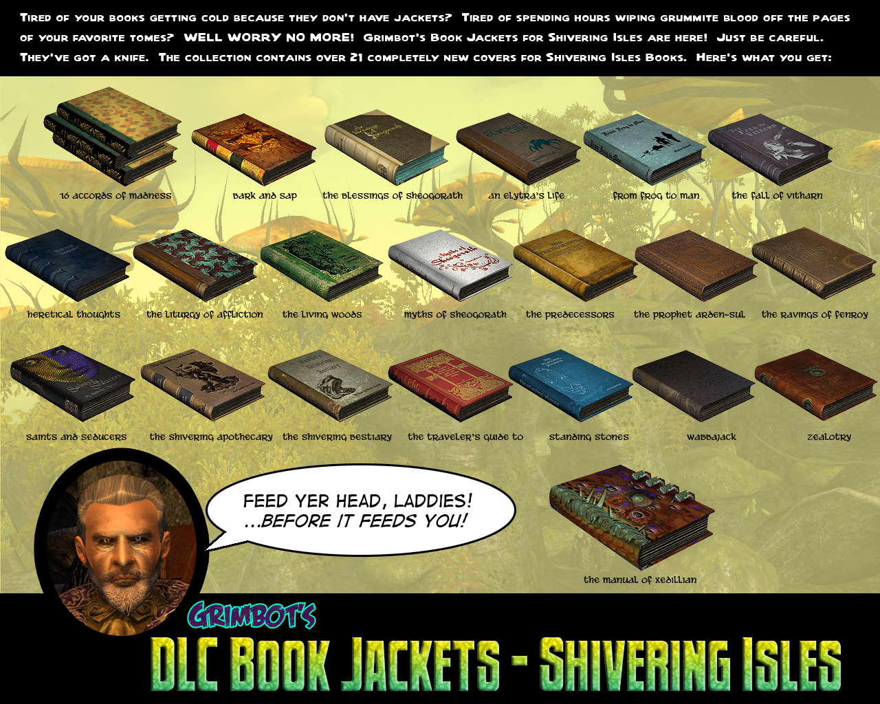 Grimbots Spell Tomes - 70 новых обложек для книг из официльного плагина DLC Spell Tomes.