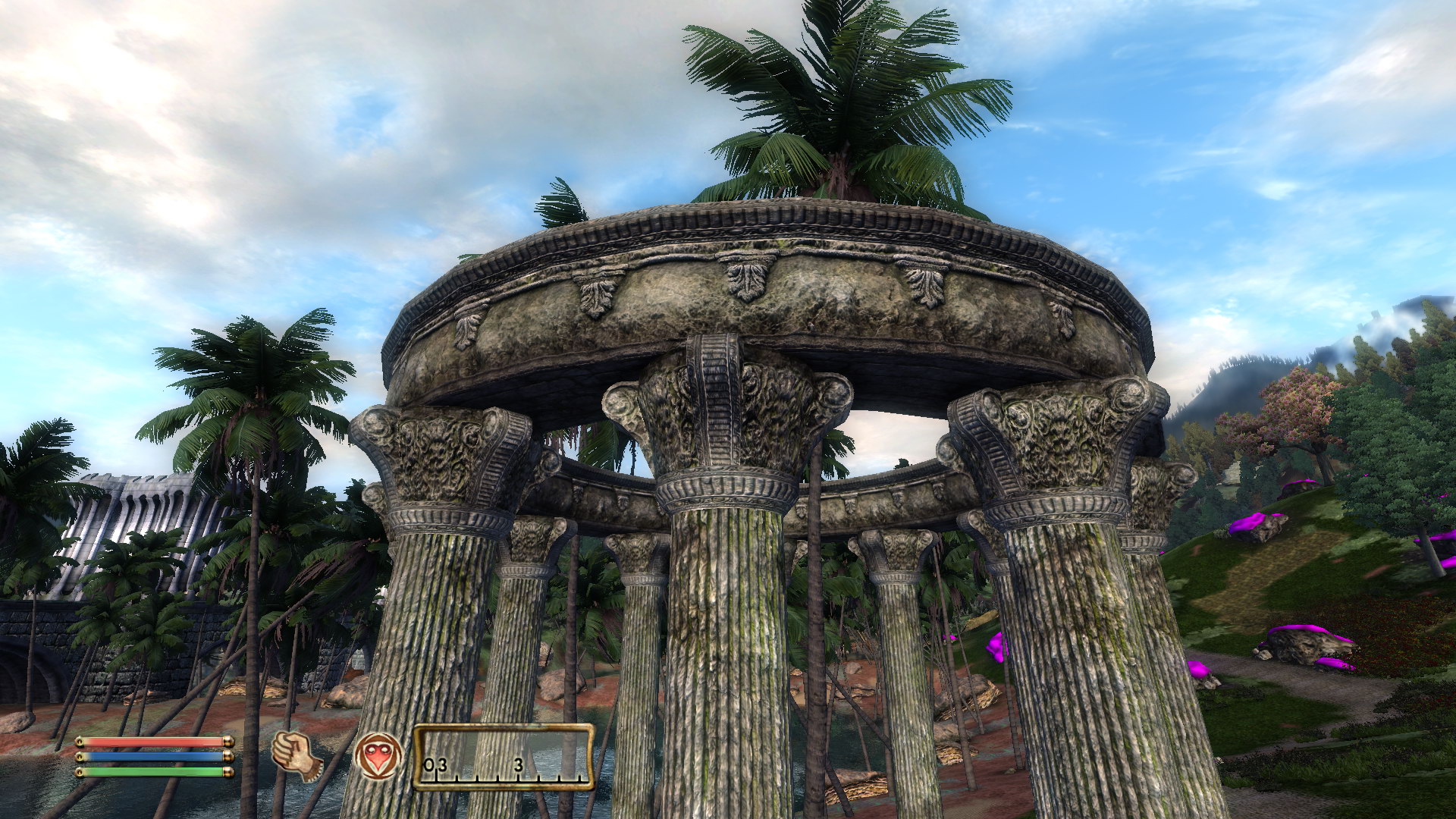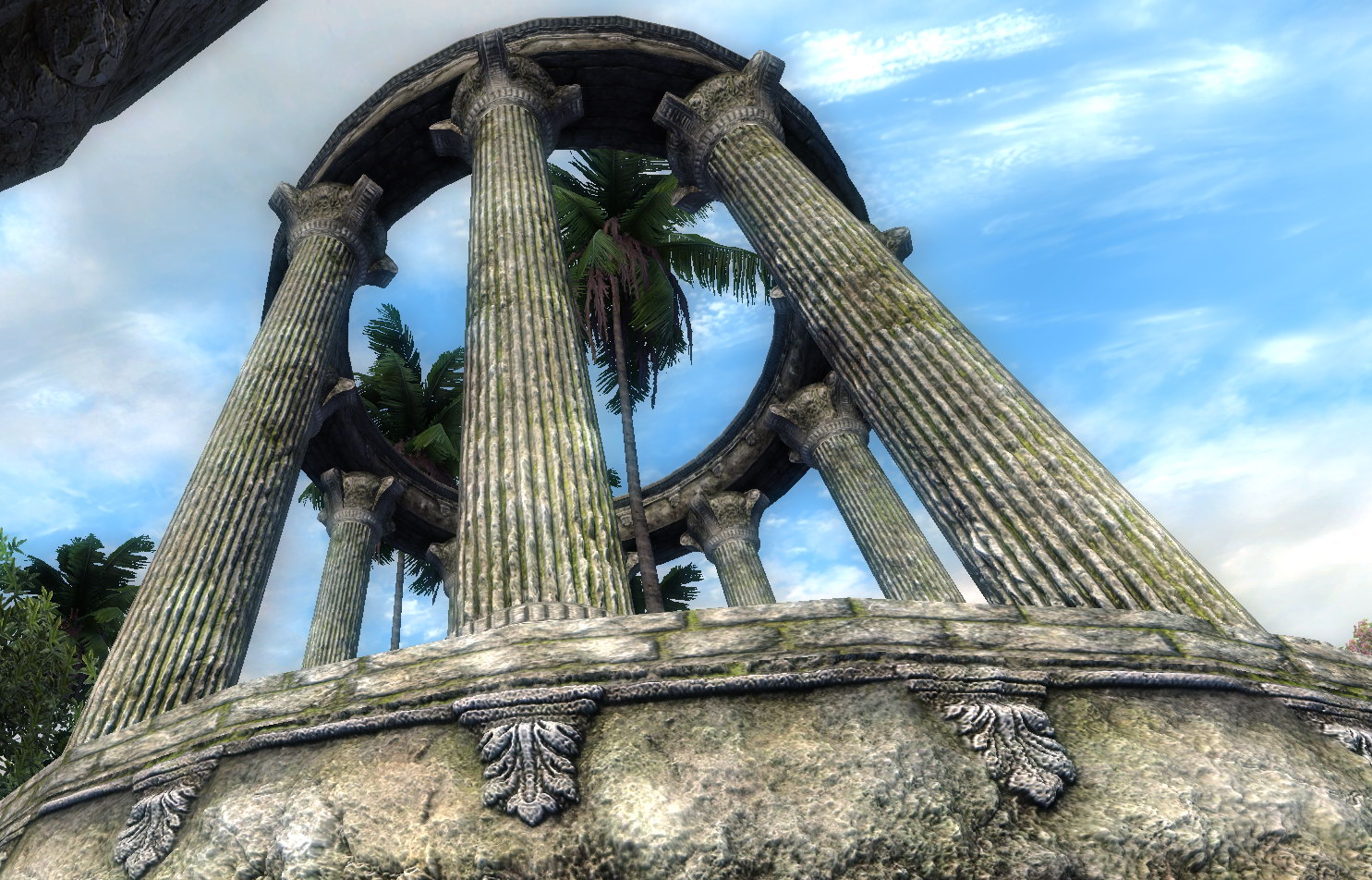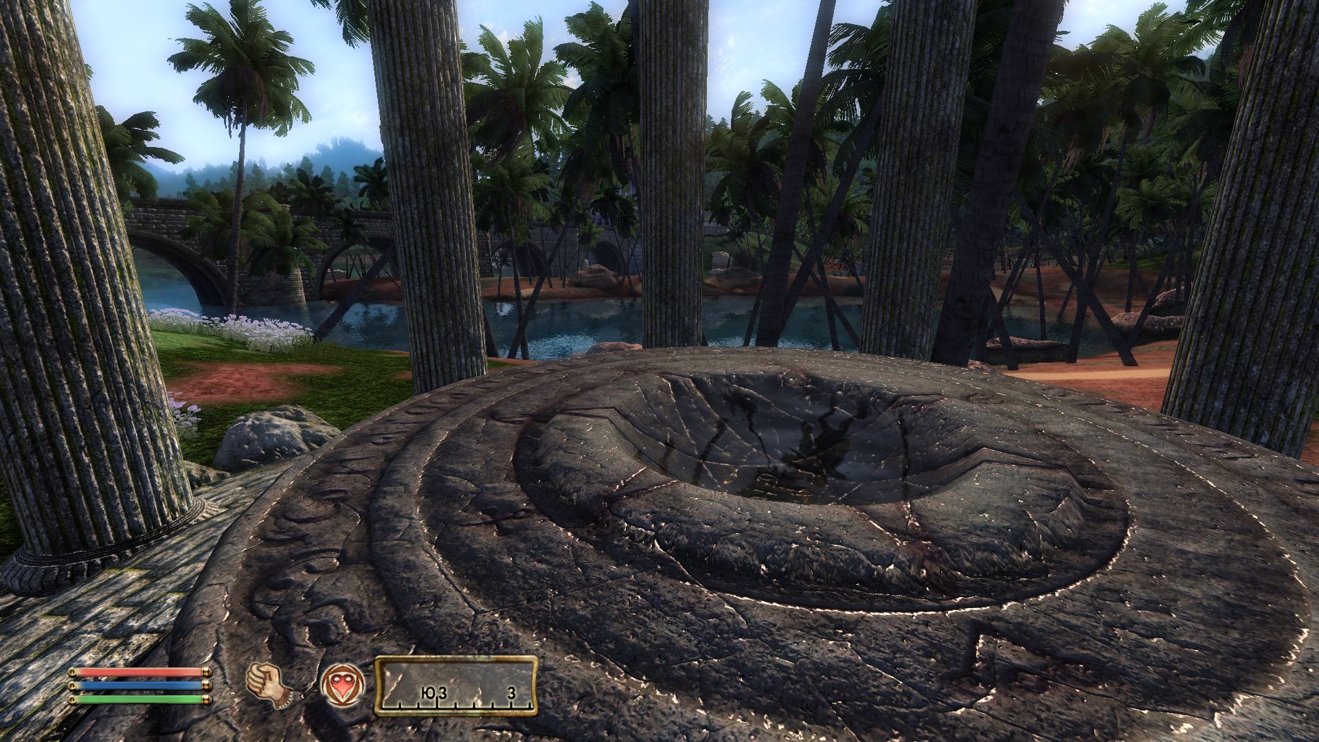 Т.к. чаша святилища находиться под открытым небом и имеет вогнутую форму там теперь скапливаеться вода (внешний вид воды полностью зависит от ваших текстур, настроек и плагинов на воду). Если вы используете OBGE или ENB внешний вид воды и все эффекты (волны, отражения, преломления) полностью поддерживаются.