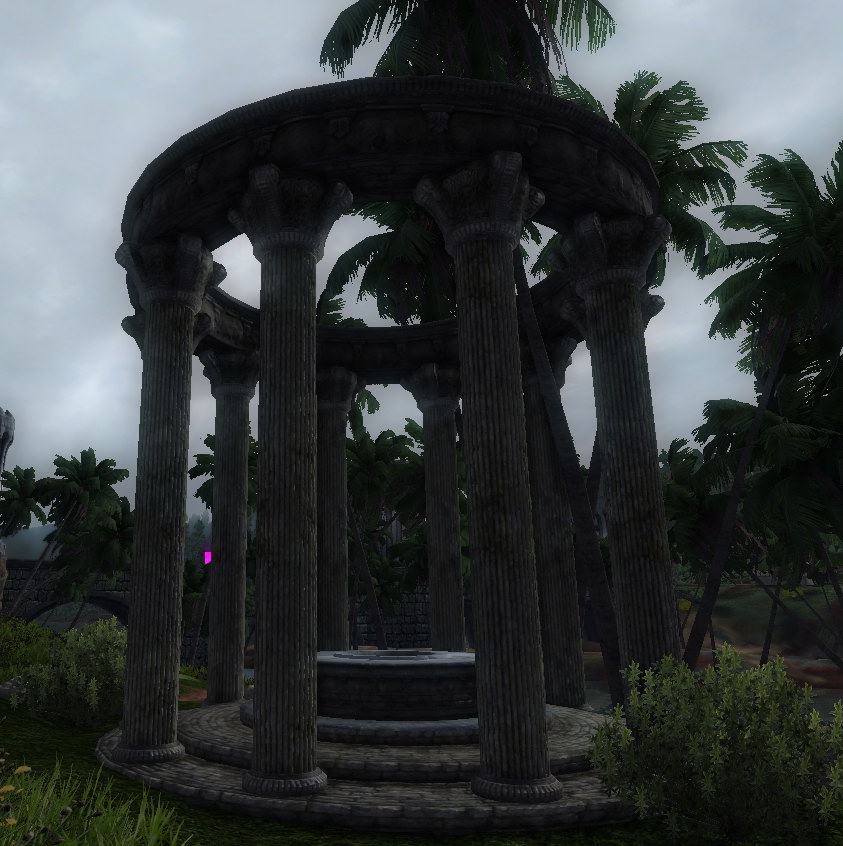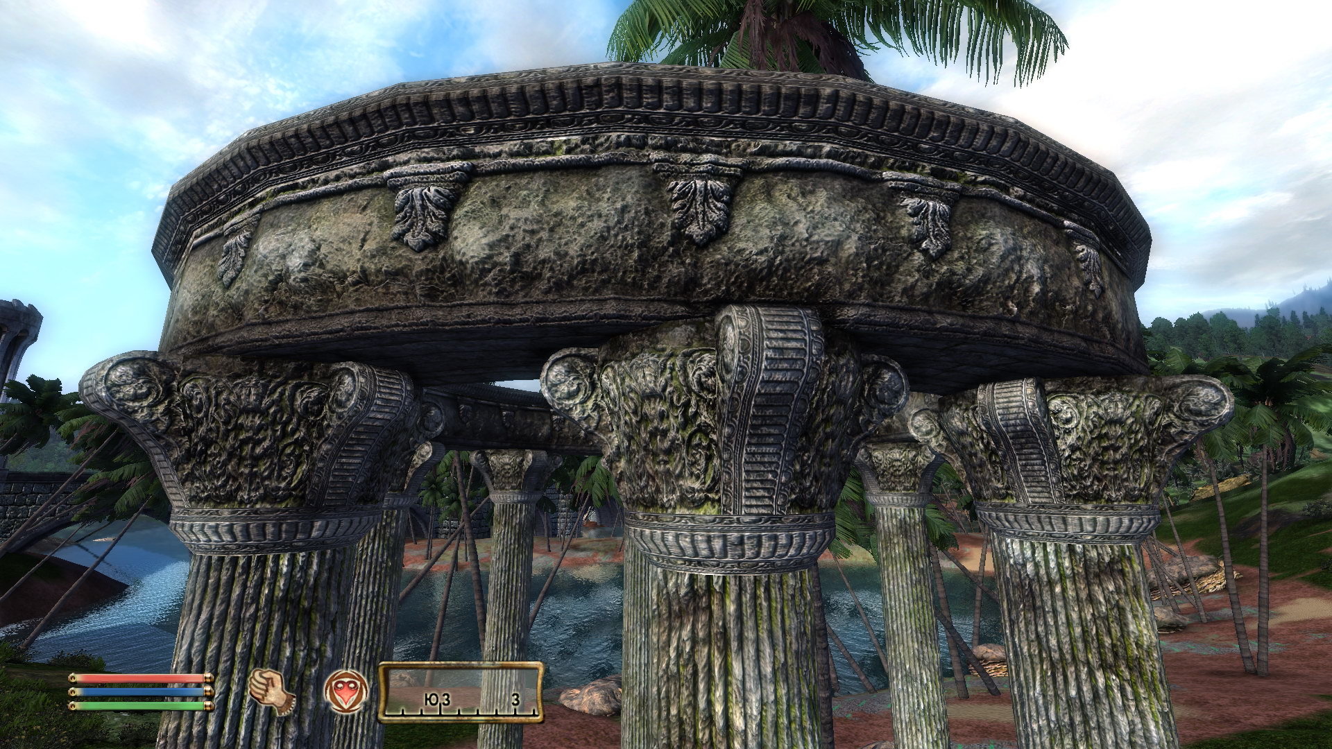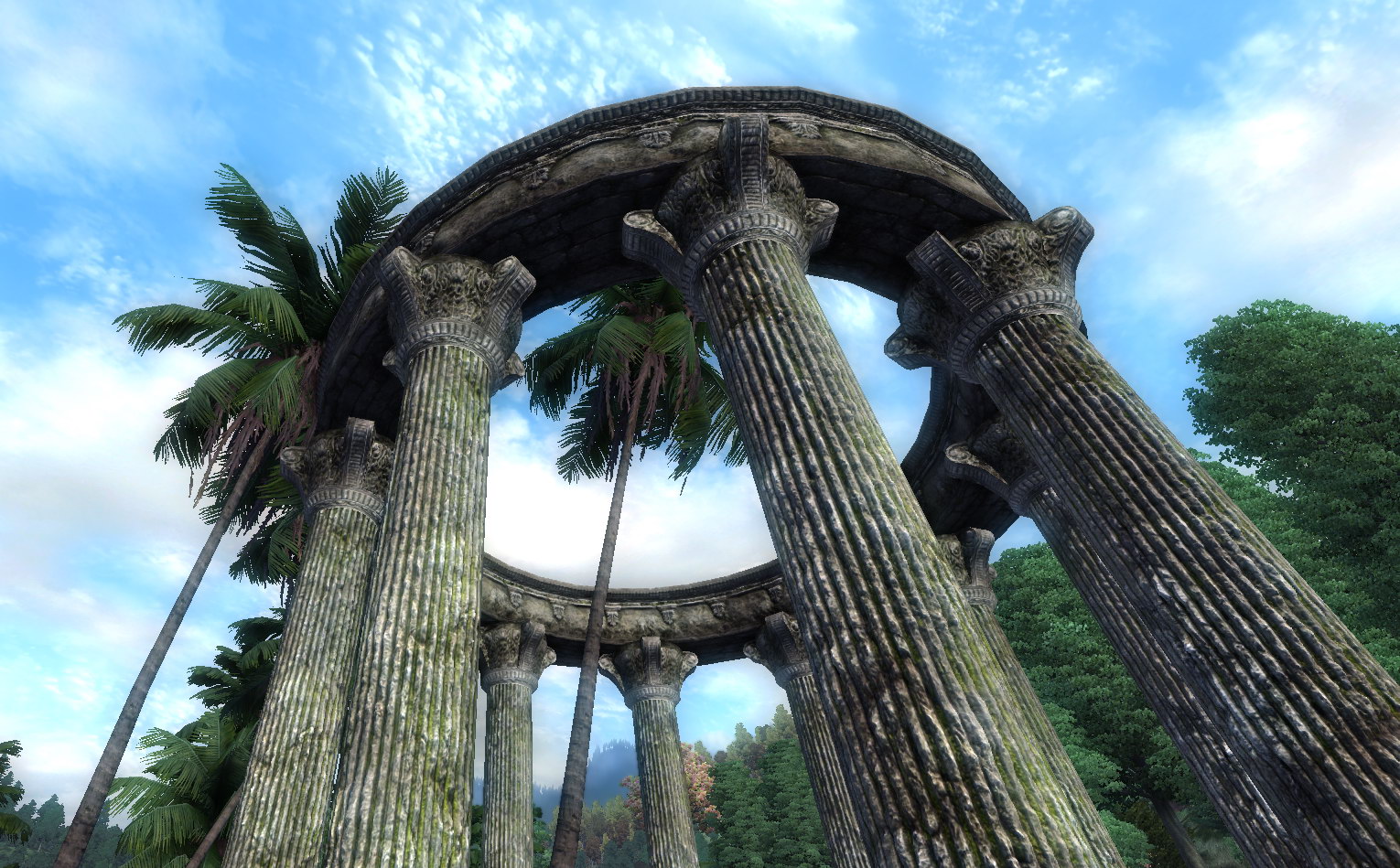 Т.к. чаша святилища находиться под открытым небом и имеет вогнутую форму там теперь скапливаеться вода (внешний вид воды полностью зависит от ваших текстур, настроек и плагинов на воду). Если вы используете OBGE или ENB внешний вид воды и все эффекты (волны, отражения, преломления) полностью поддерживаются.