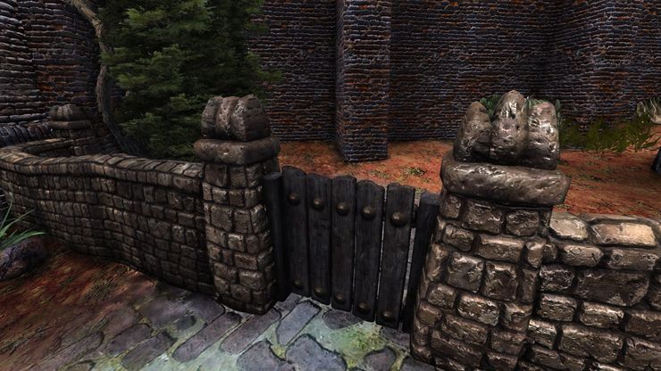 Реплейс каменных оград, их текстур, а также "фурнитуры" (металлических оградок и досок). Модель металической дверки заменена на ажурный вариант.Теперь они используют паралакс. Модели оптимизированы в ручную, весят меньше ванильных. Забочкики Бравила и Кватча не тронуты по понятным причинам. На них отдельные планы.