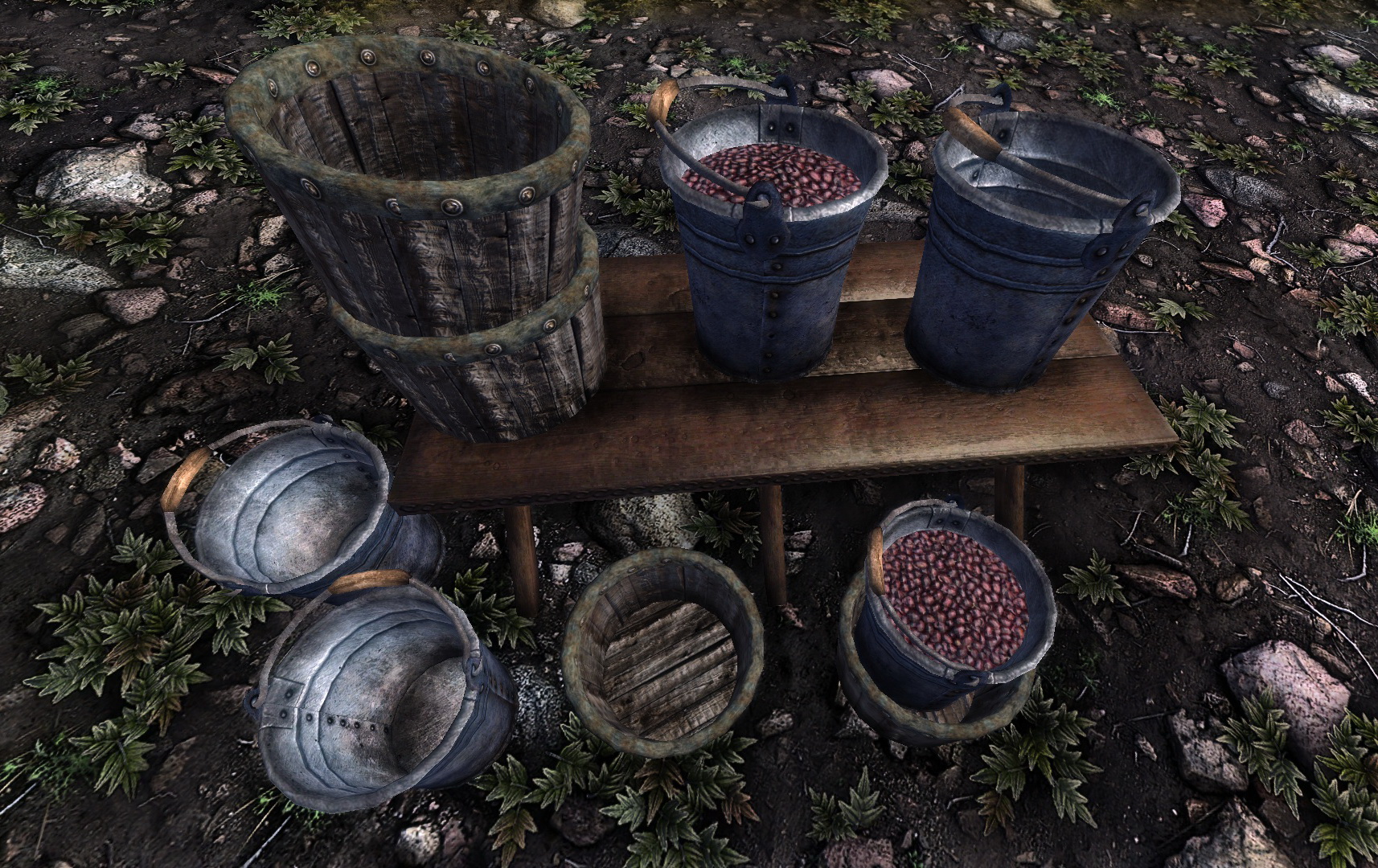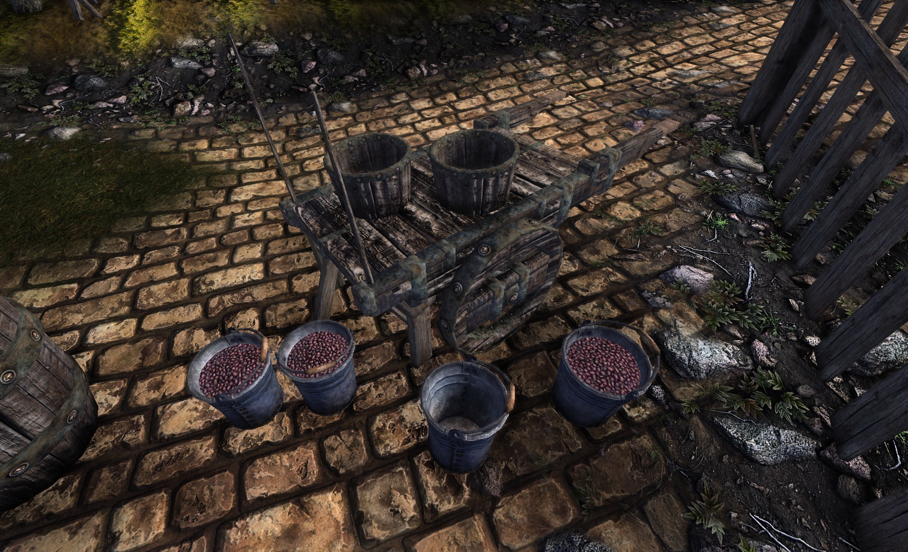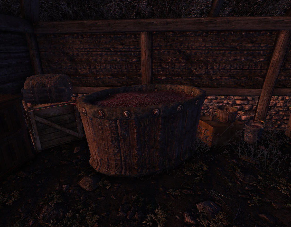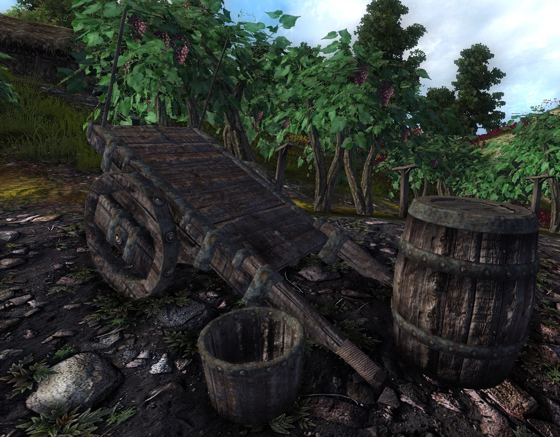 ручная толкушка, столик, два вида опор для винограда. Пресс, ведра и один вид опор получили