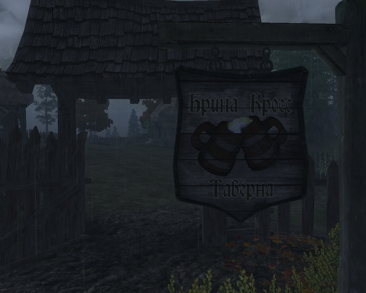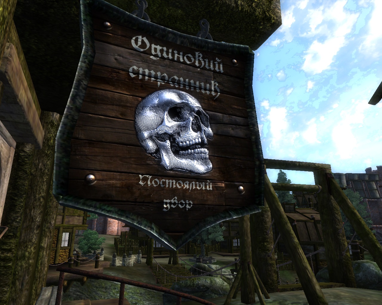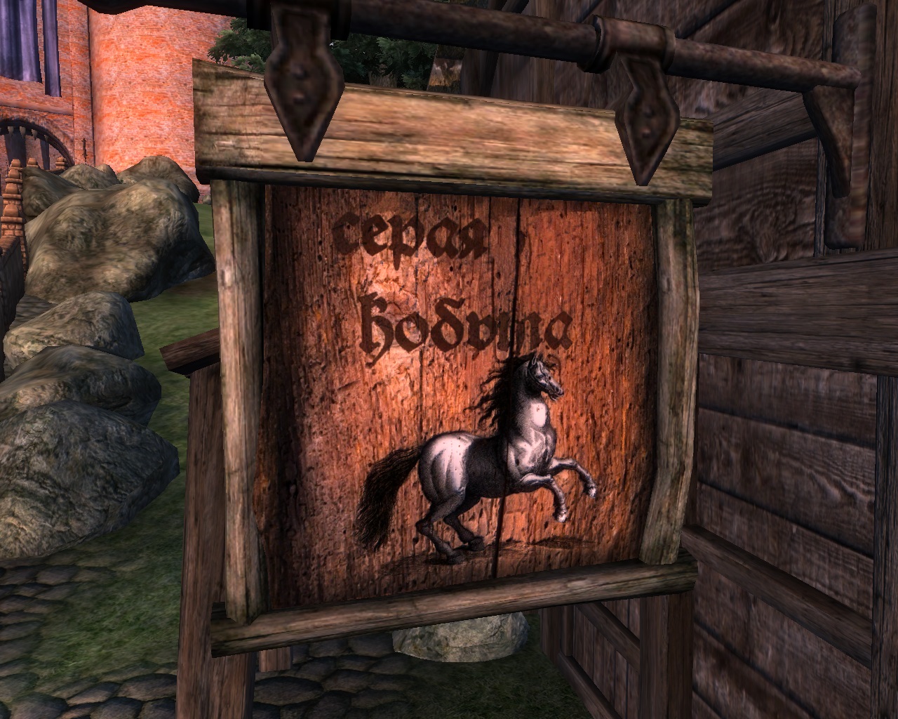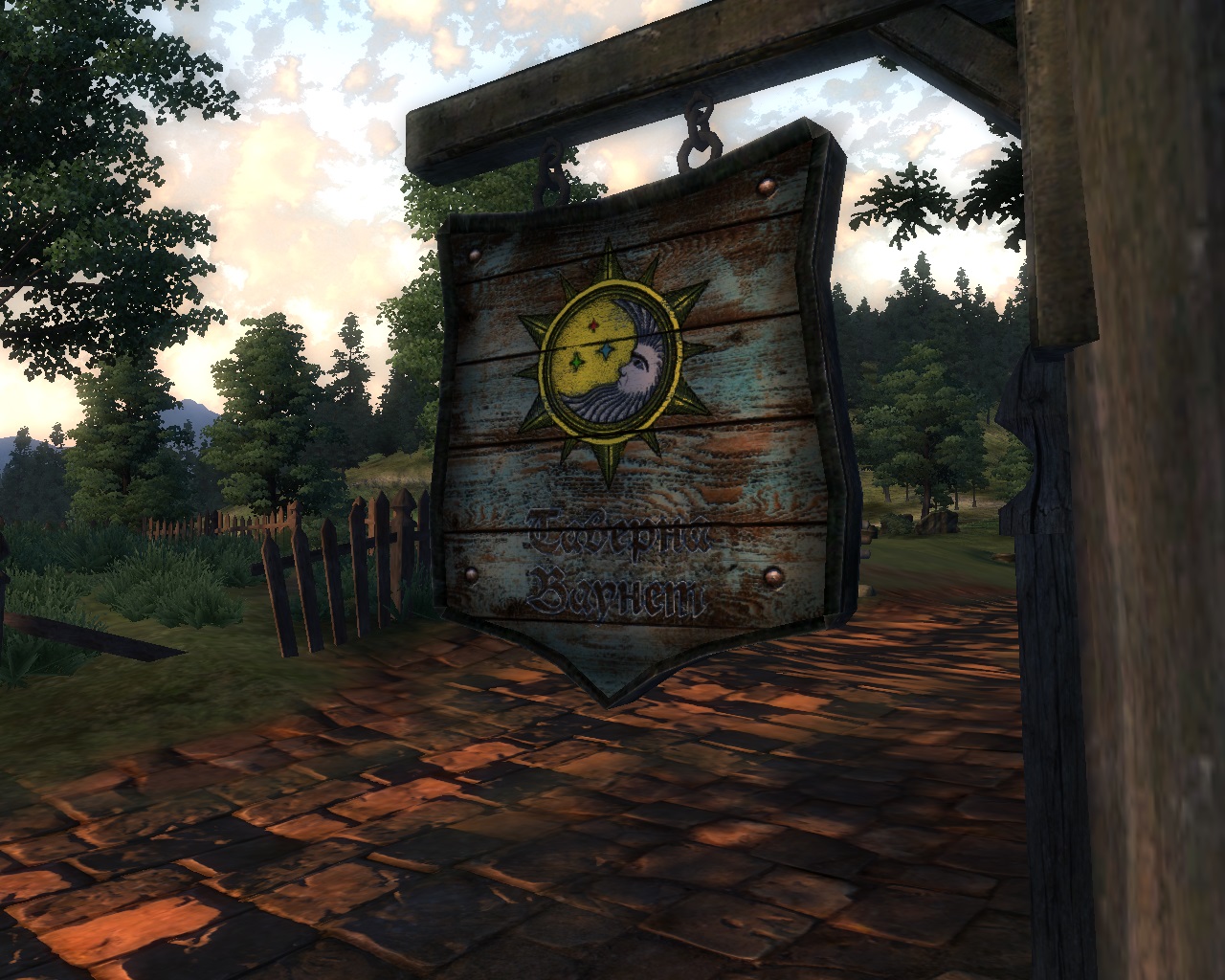 В архиве "Retextured Inn Signs(RUS)" -русский текст вывесок, помимо основного архива присутствует опциональный который добовляет вывеску таверне "пограничной заставы".