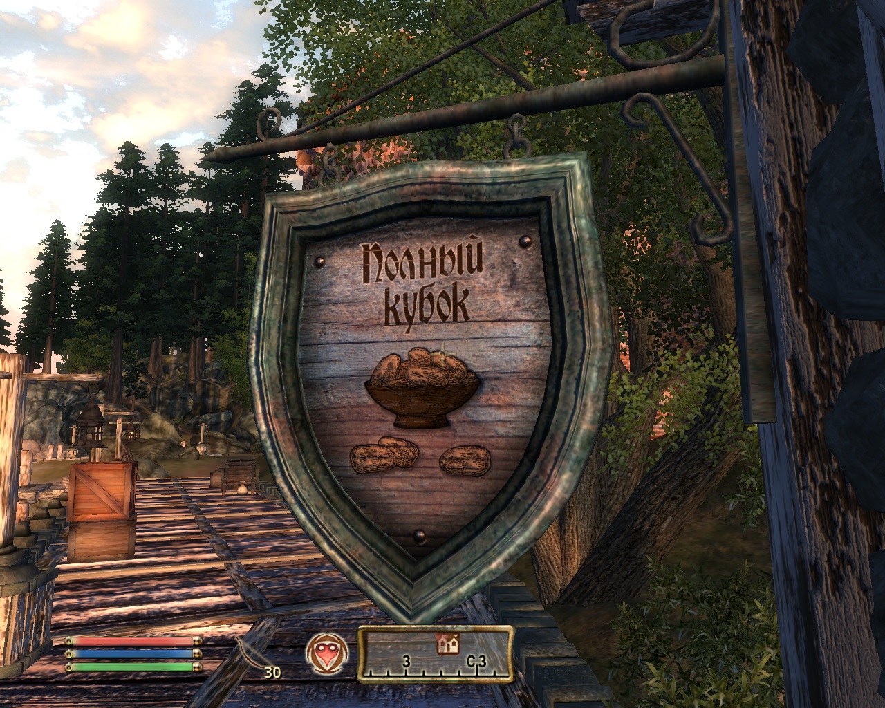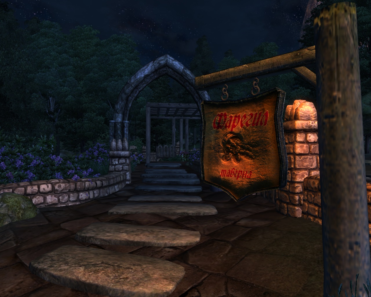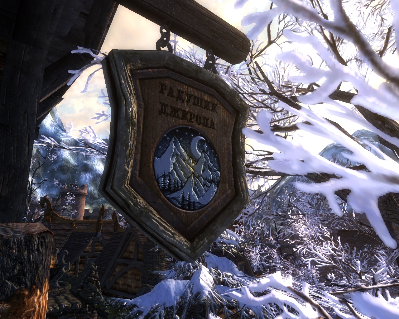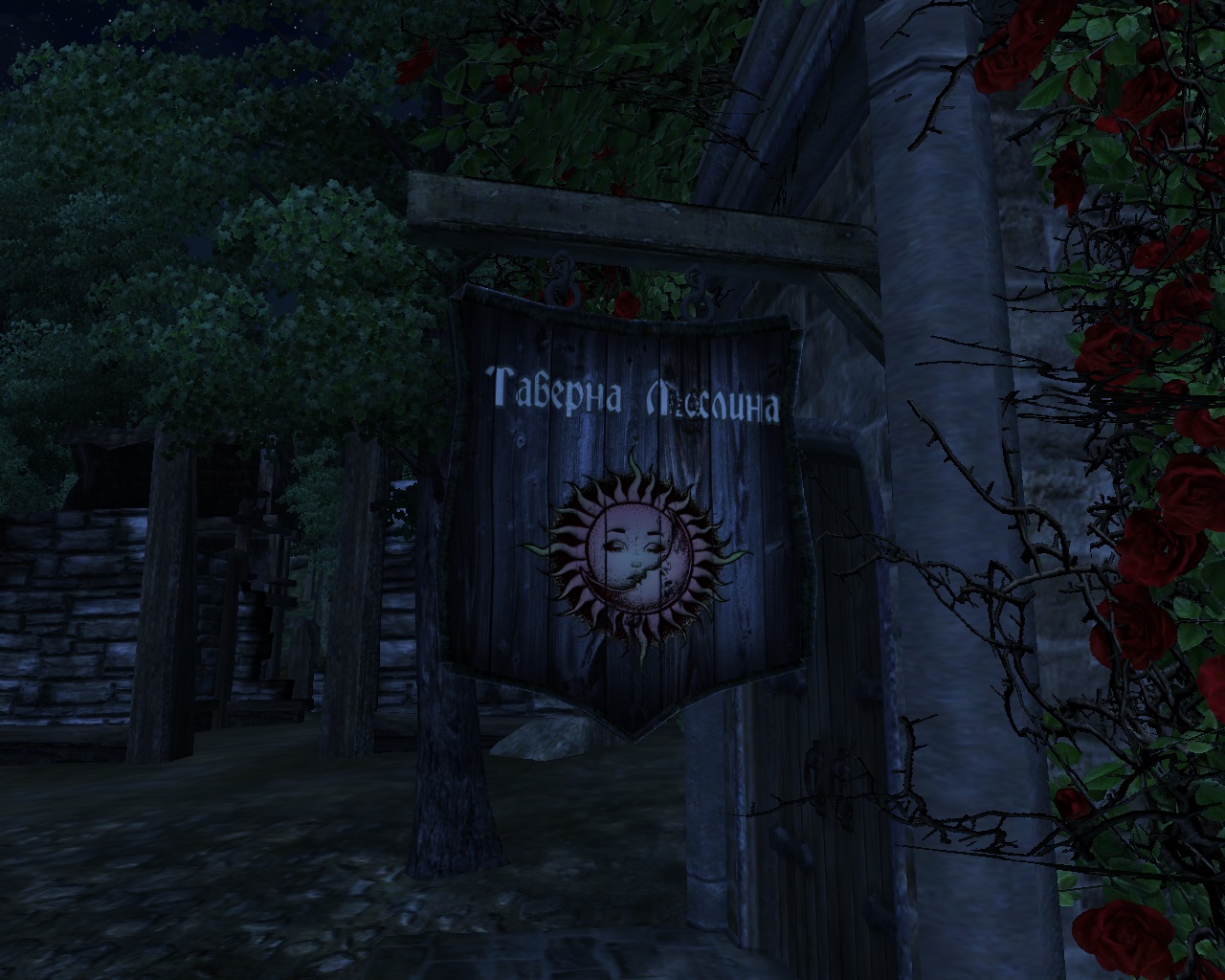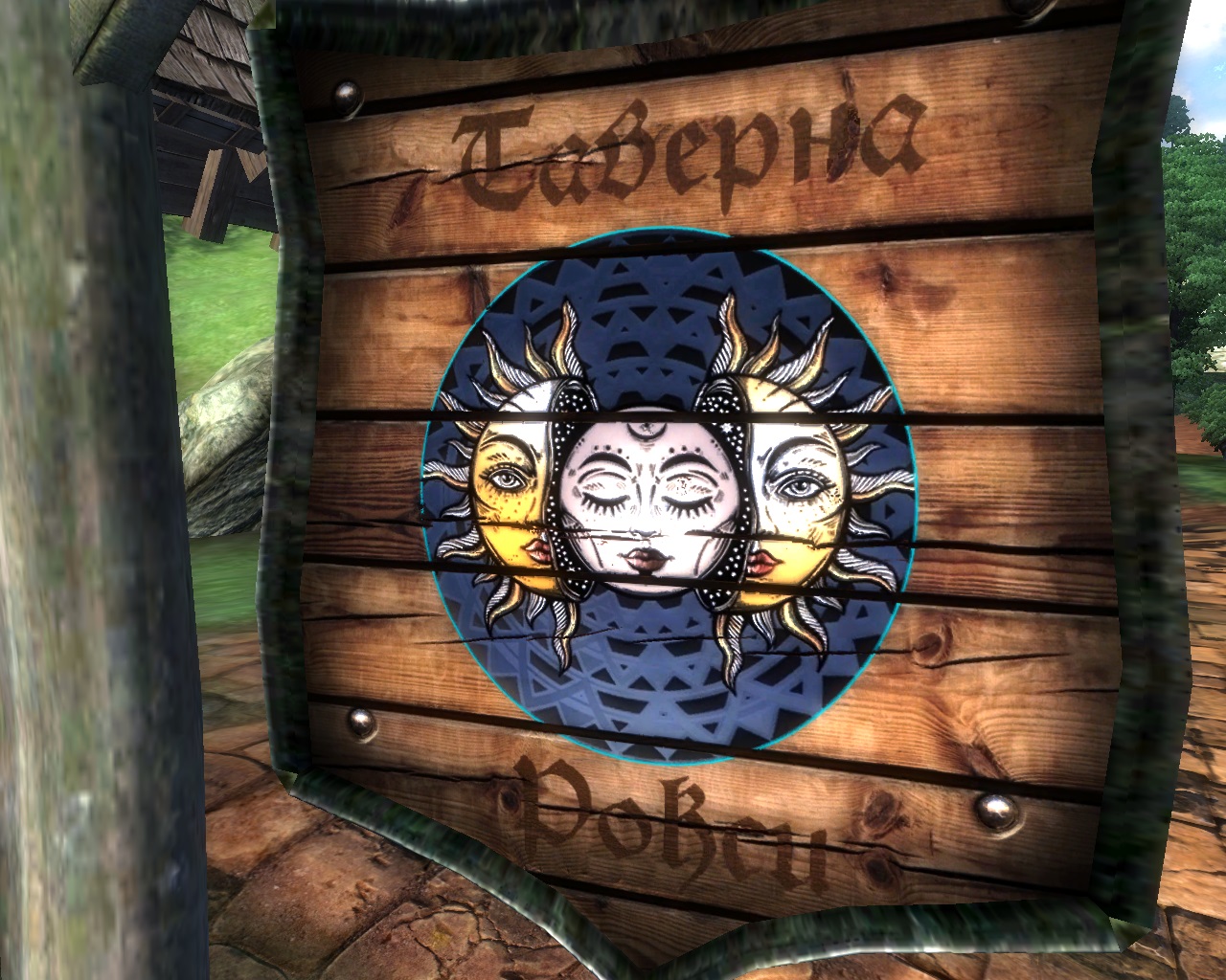 В архиве "Retextured Inn Signs(RUS)" -русский текст вывесок, помимо основного архива присутствует опциональный который добовляет вывеску таверне "пограничной заставы".