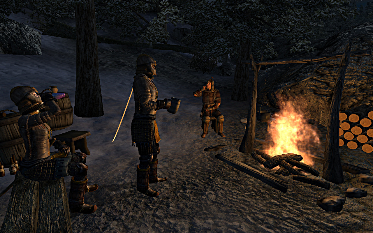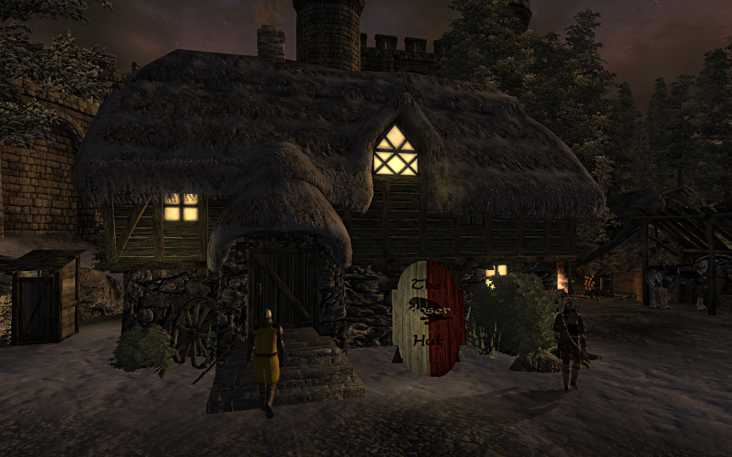Оживленная таверна за пределами северных ворот Брумы. Где замерзший, усталый путник может отдохнуть, пополнить припасы и разделить трапезу с постояльцами.