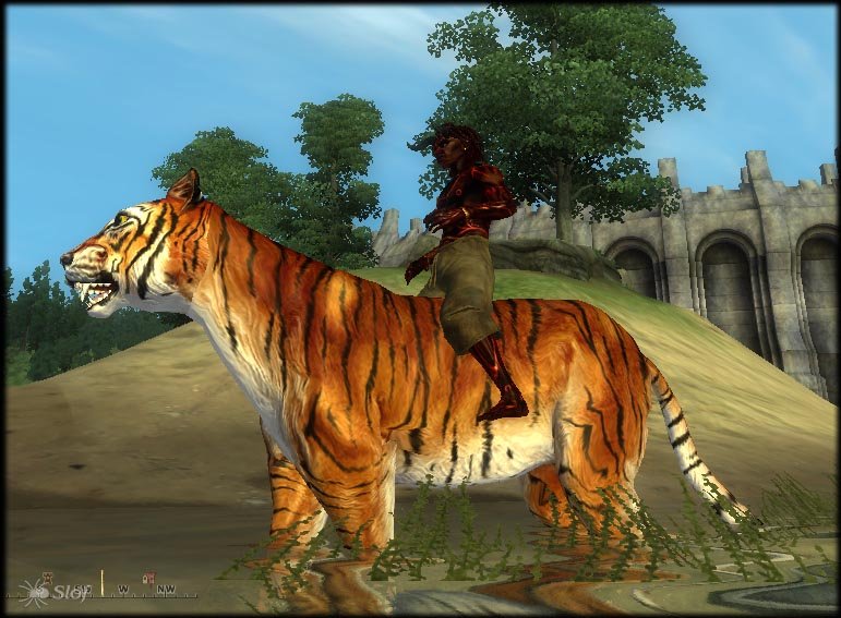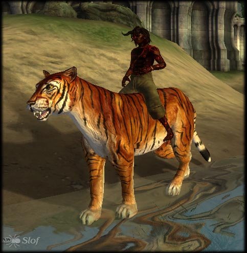 В аддон входят плагины Oblivion Mount Project и Slof's Tiger Retexture, из которых мной и был собран ездовой тигр. Найти зверюгу можно в Эльфийских садах в Имперском городе, в одном из внутренних двориков.