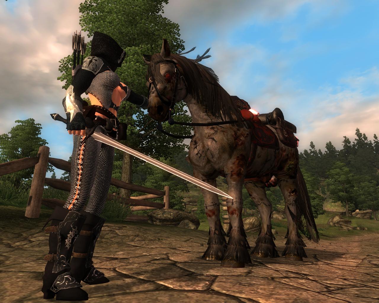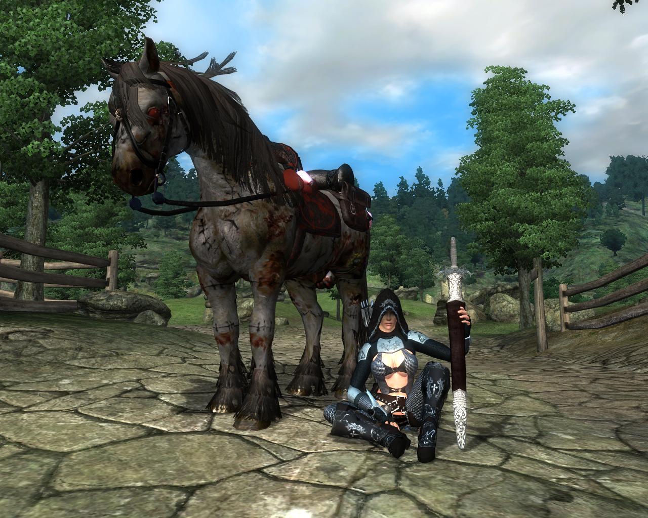 В пещере "Черный излом" во внутреннем святилище, в одном из открытых гробов вы найдете сумку некроманта, а в ней странное кольцо. Наденьте его и тут же рядом с вами появится конь-нежить по кличке Эшу (Эшу - имя бога в мифологии Йоруба, множество обязанностей было у этого древнего божества, а некоторые считали его олицетворением смерти).