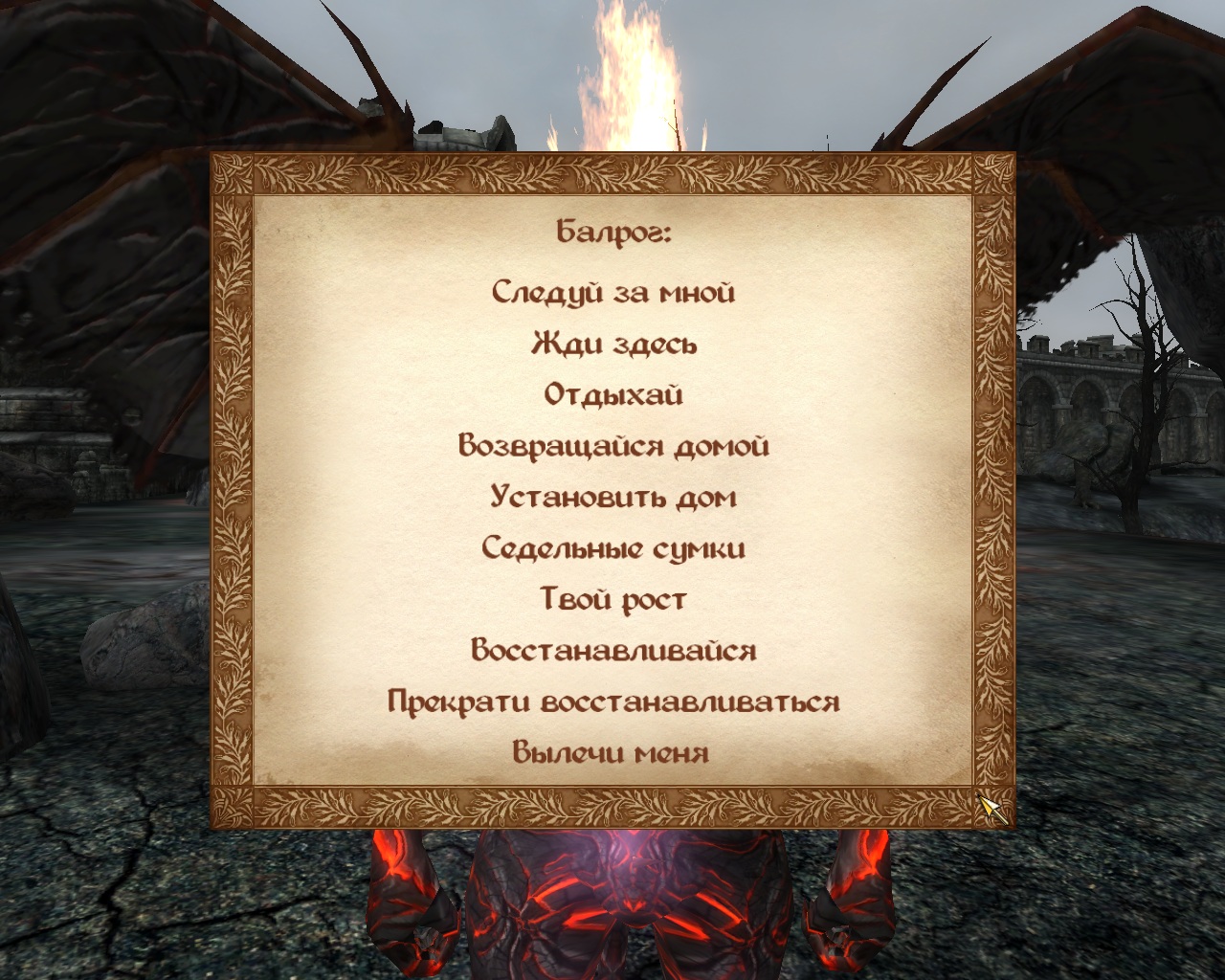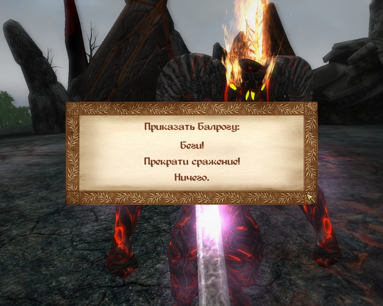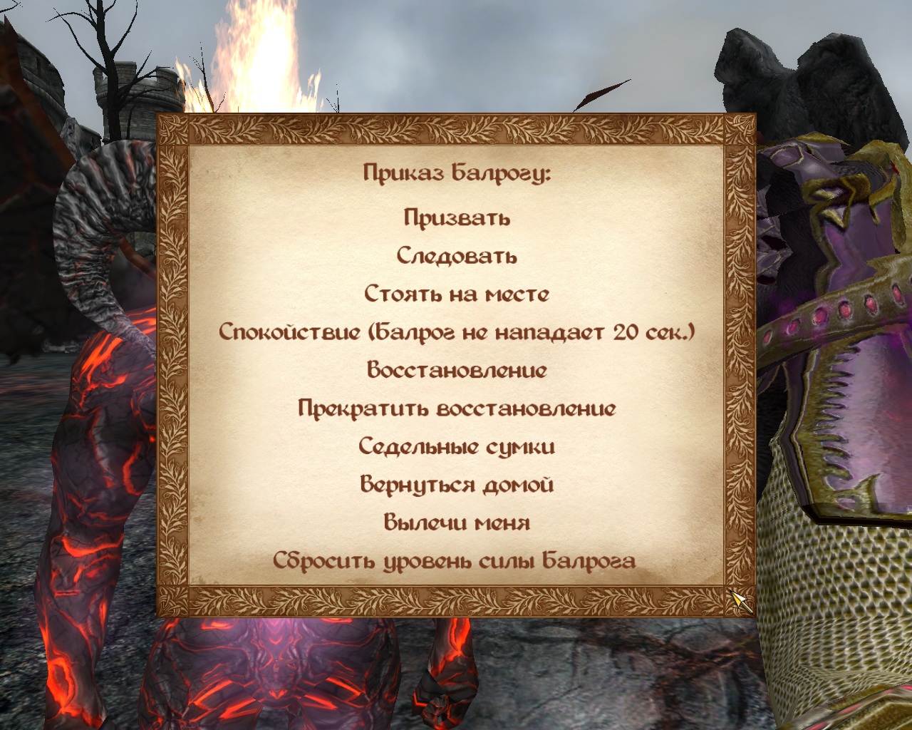 "Агрессивный режим" - Балрог становиться агрессивен и вступает в бой со всеми, кроме игрока. Исключением являются существа и NPC - компаньоны игрока.