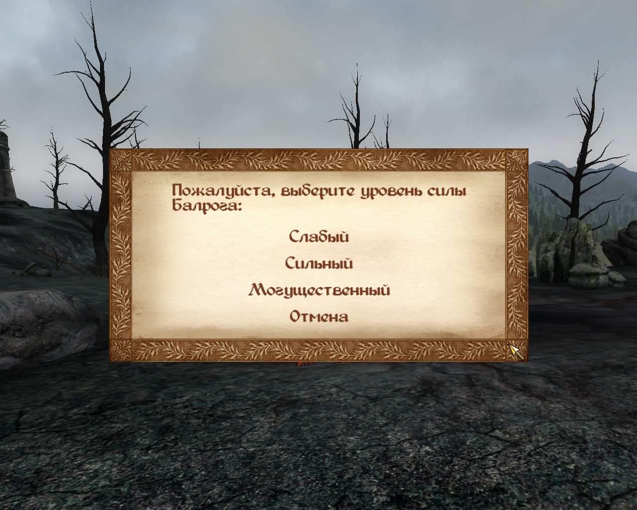 "Ауры" - Позволяет выбрать один из трех визуальных эффектов для Балрога, так же можно отключить все визуальные эффекты.