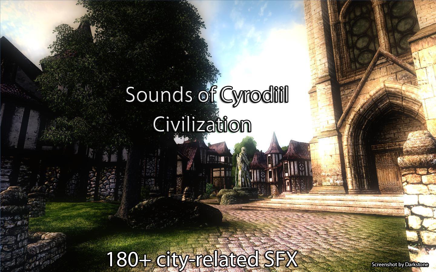 Плагин "Sounds of Cyrodiil" добавляет около 200 звуковых эффектов, проигрываемых в более чем 5400 точках мира. Плагин затрагивает каждую ячейку и регион мира, от цивилизованных городов до забытых подземелий, от дикой природы до специальных событий (квесты), ни одно место более не беззвучно. Звуки зависят от времени суток, гуляя днем по улицам города, вы услышите эхо людских криков, звук открывающихся и закрывающихся дверей, звуки, издаваемые рабочими. Ночью же вы услышите кошек, дерущихся за территорию, лай собак, возгласы пьянчуг. Чтобы включить меню настройки мода, откройте консоль и напишите в нее StartQuest CliffSoCConfig