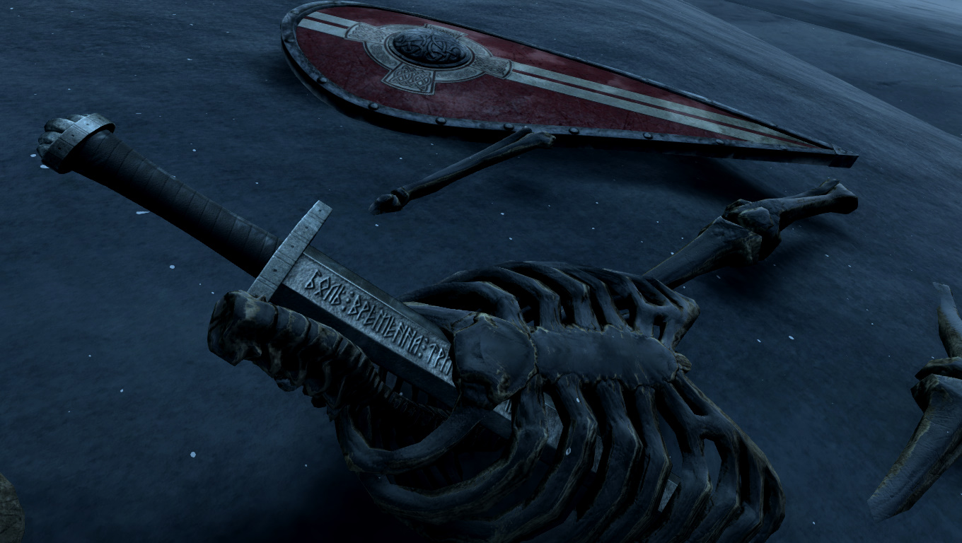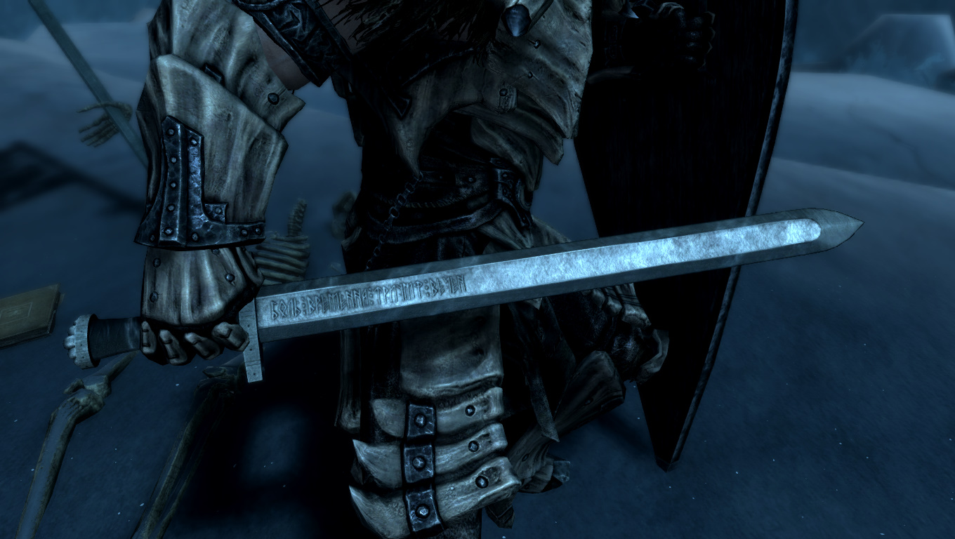 Меч и щит существуют в двух вариациях. То снаряжение, которое мы находим, имеет зачарование и называется меч и щит Мороза.