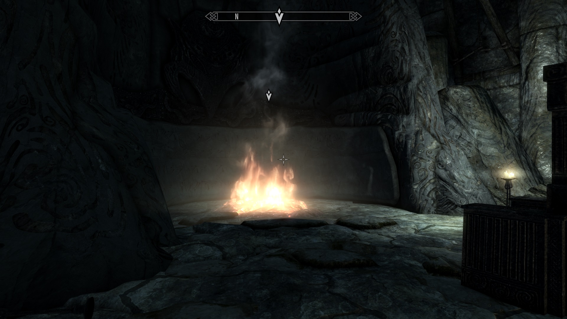 - в кургане Железный может быть такая же ситуация, как и с Хармугсталом, если он был зачищен до установки мода. Чтобы открыть решетку, либо положите на пъедестал напротив неё что-нибудь тяжелое, либо просто прыгните на него;