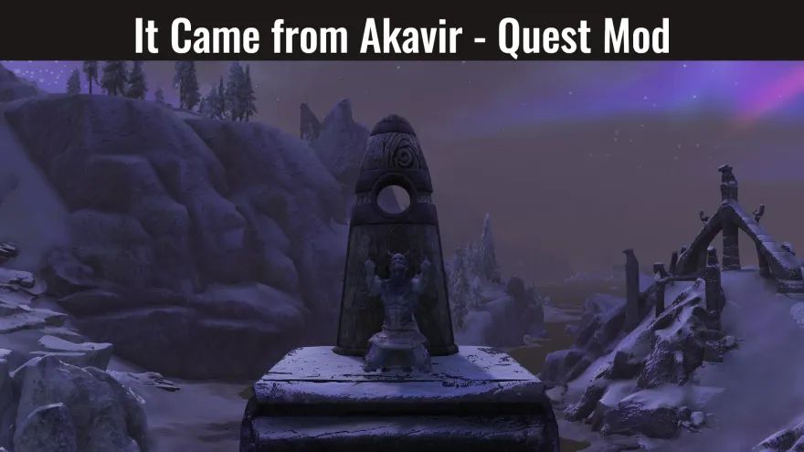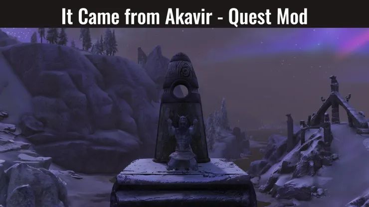 «Оно приходит с Акавира» — это короткий квестовый мод, посвященный загадочному существу, известному как Камаль. В ходе квеста вы узнаете всё об их родине, народе и их взаимодействии с Тамриэлем. Этот диалог объясняет и расширяеть малоизвестную страницу лора. Помимо превосходной (английской) озвучки, мод включает в себя совершенно новый комплект брони и оружие для игрока.