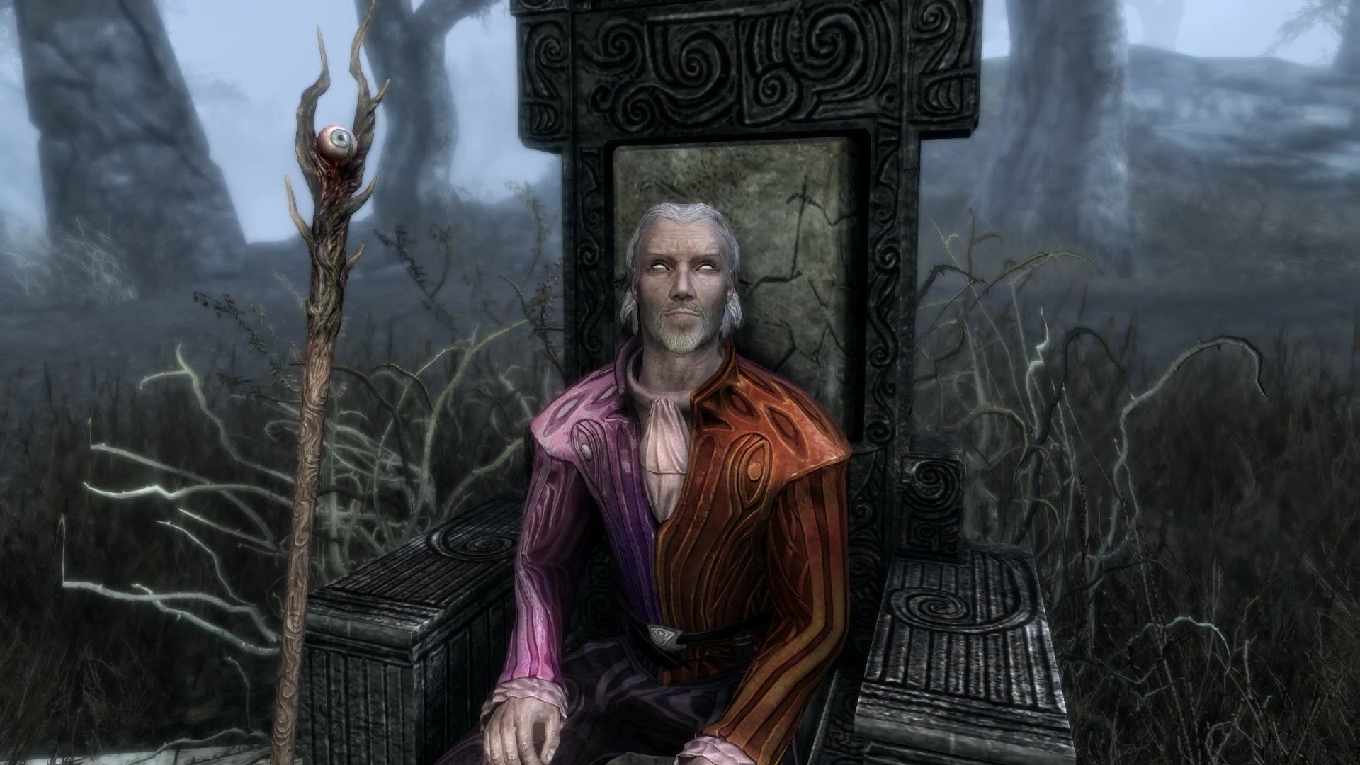 Посох Шеогората теперь присутствует во время «Разума безумия». Шеогорат, возможно, должен был иметь свою трость во время «Разума безумия», так как в игре есть неиспользуемые текстуры для неё, и поскольку Creation Club добавил его посох, автор просто разместил его рядом с ним. Если вы хотите такой же, вам всё равно придётся выполнить связанный с ним квест. Требуется посох Шеогората.