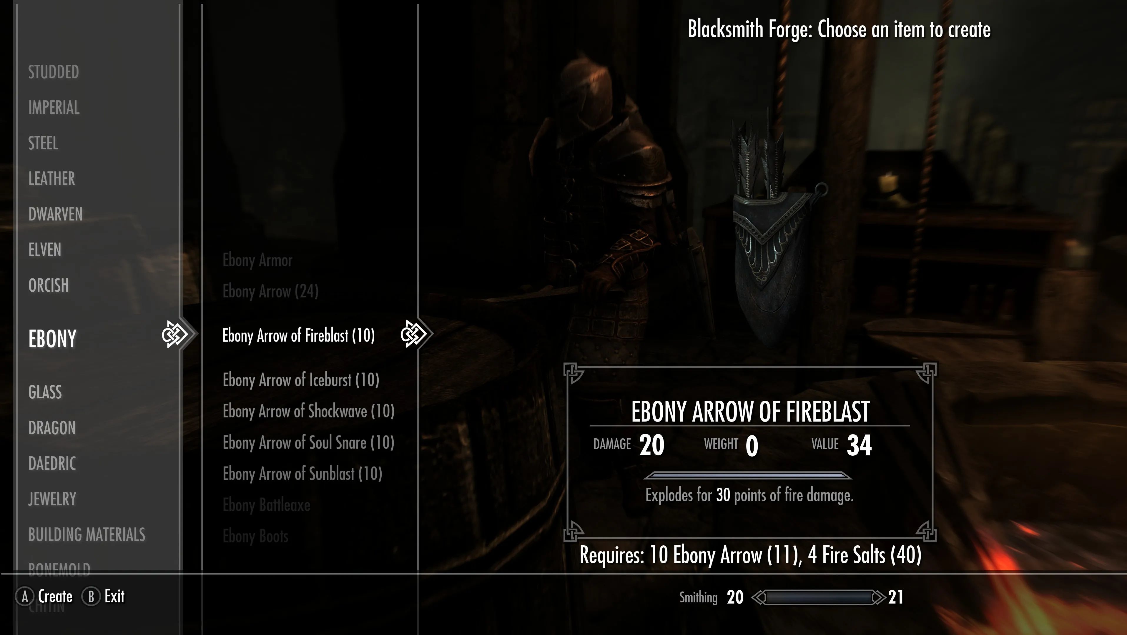 Двемерские стрелы «Огненный взрыва», «Ледяной взрыва» и «Ударной волны» теперь доступны на уровнях I–V, причём урон на каждом уровне увеличивается. Стрелы, изготовленные из металлов или материалов, требующих более высокого уровня мастерства для ковки, таких как драконья кость, будут обладать более сильными зачарованными элементальными эффектами, чем стрелы из более распространённых материалов. Есть два особых исключения: даэдрические стрелы, обладающие естественной огненной стихией и способные быть зачарованными огненными эффектами, столь же мощными, как и стрелы из драконьей кости, и стрелы из сталгрима, обладающие врождённой ледяной стихией, что позволяет им накладывать столь же мощное зачарование мороза.