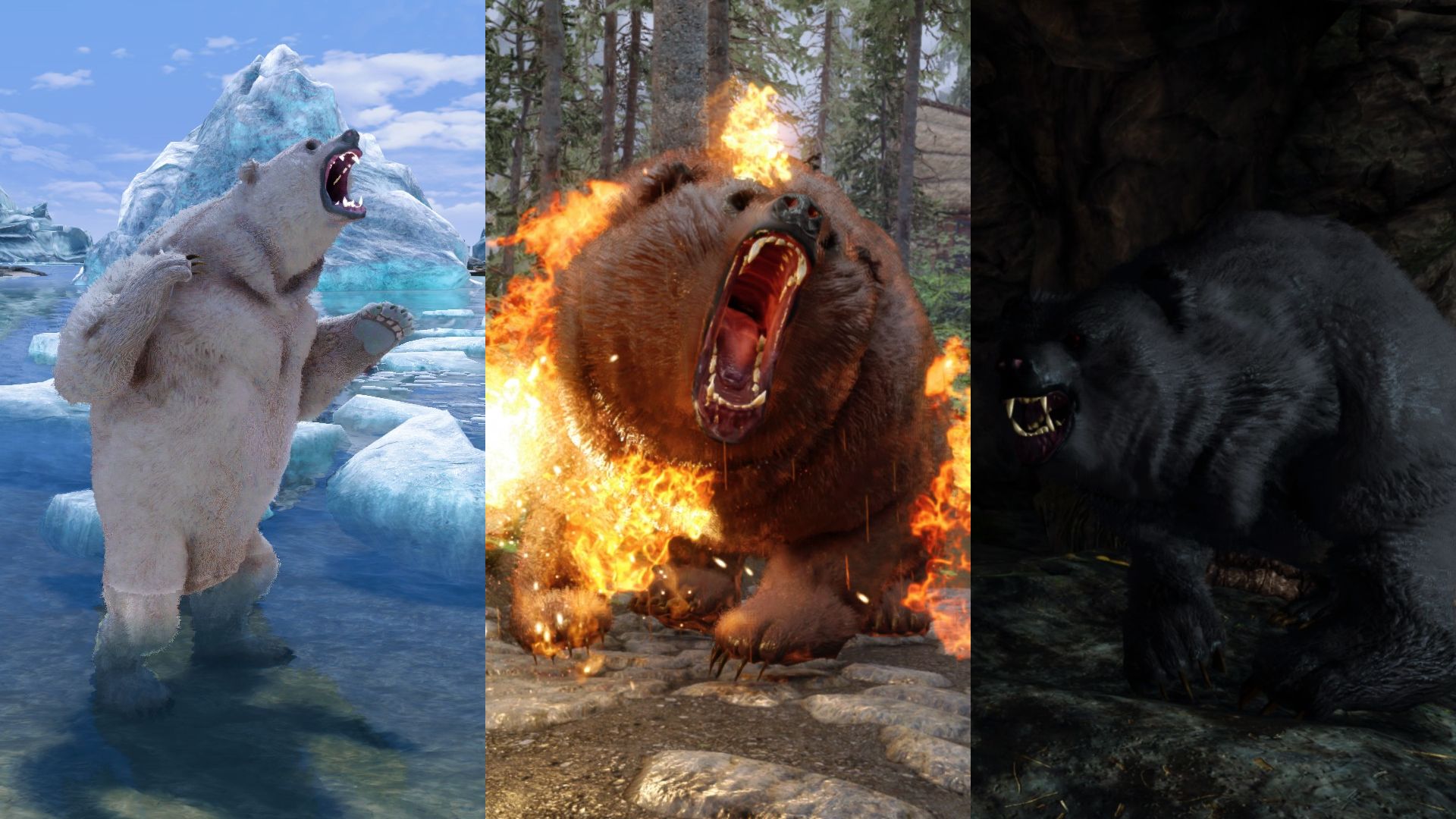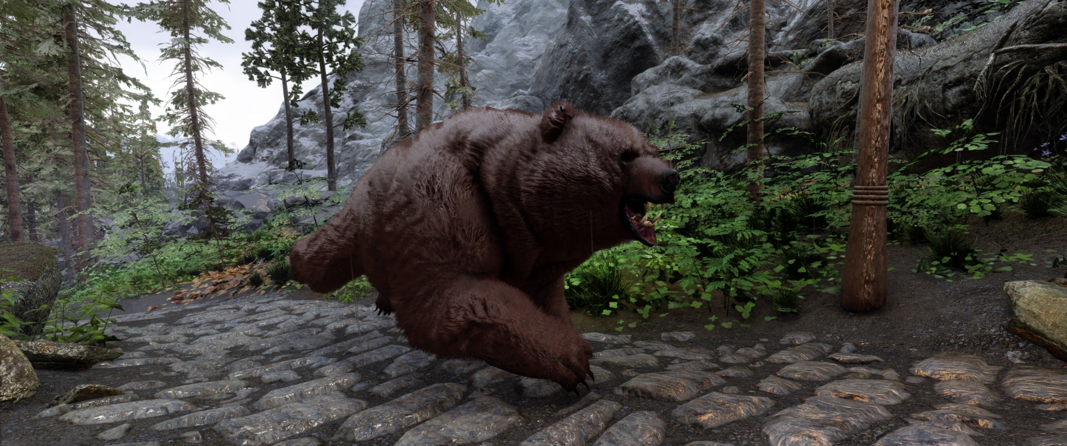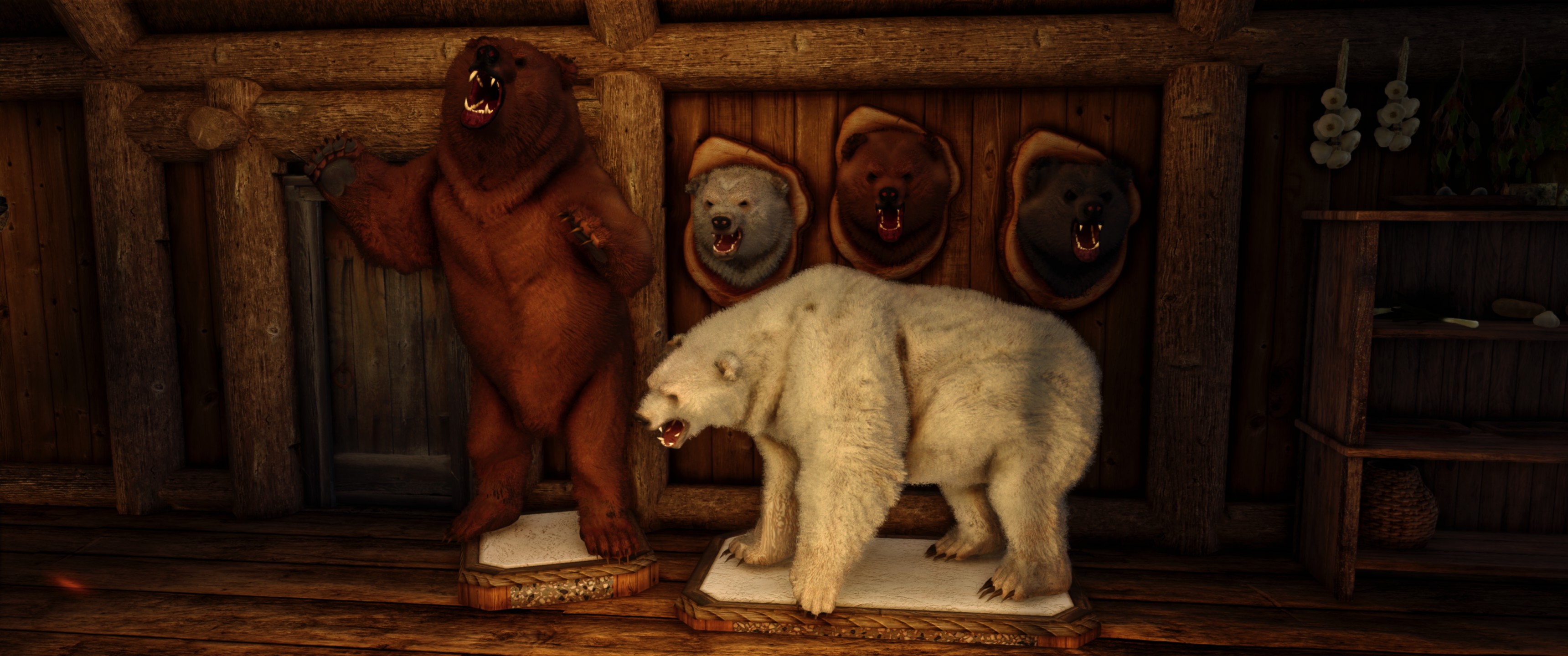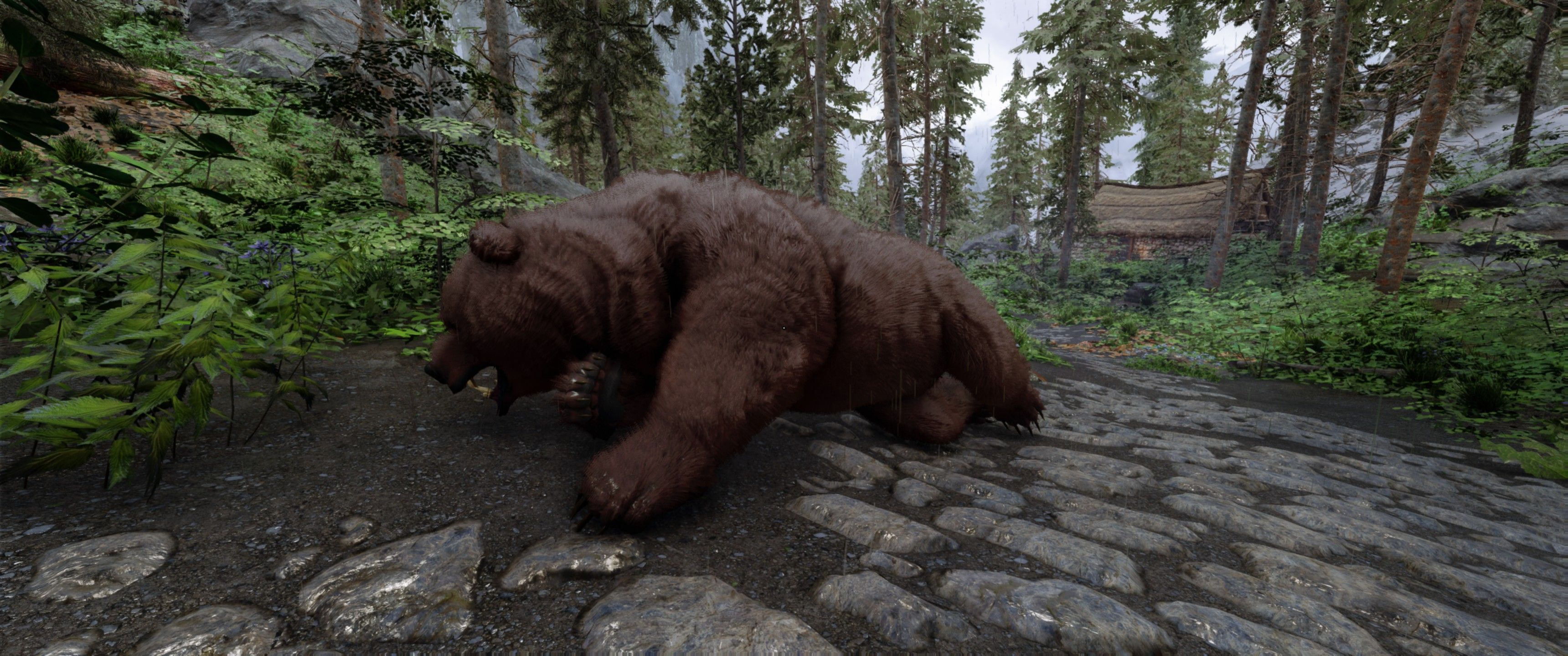 Это визуальный пересмотр медведей Скайрима. Каждый тип медведя (бурый, снежный и пещерный медведь) теперь будет иметь свои особенности. Медведи крупнее и имеют реалистичный мех, использующий текстурирование оболочки - технику, используемую в современных играх, таких как RDR2. Охотничьи трофеи также были обновлены в соответствии с новыми моделями. Загрузочный экран бурого медведя также использует улучшенную модель для соответствия новым моделям медведей.