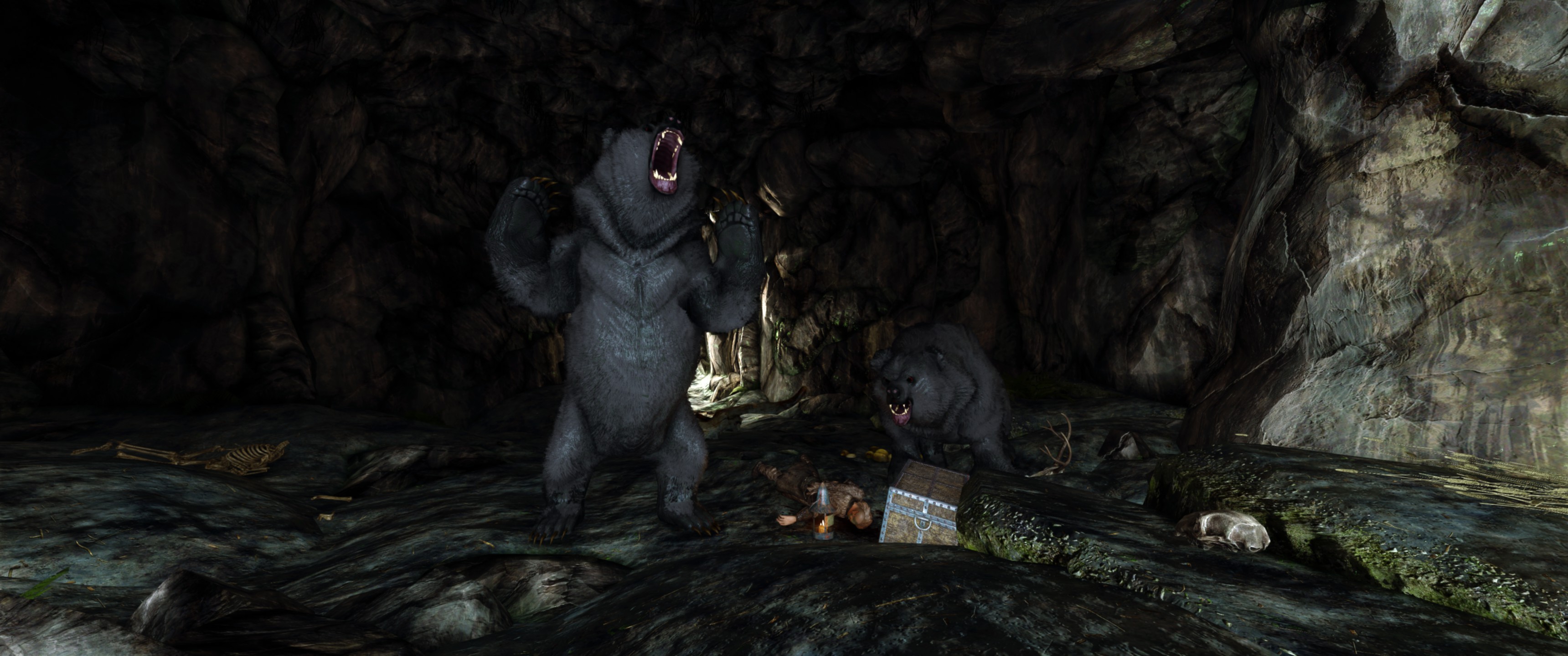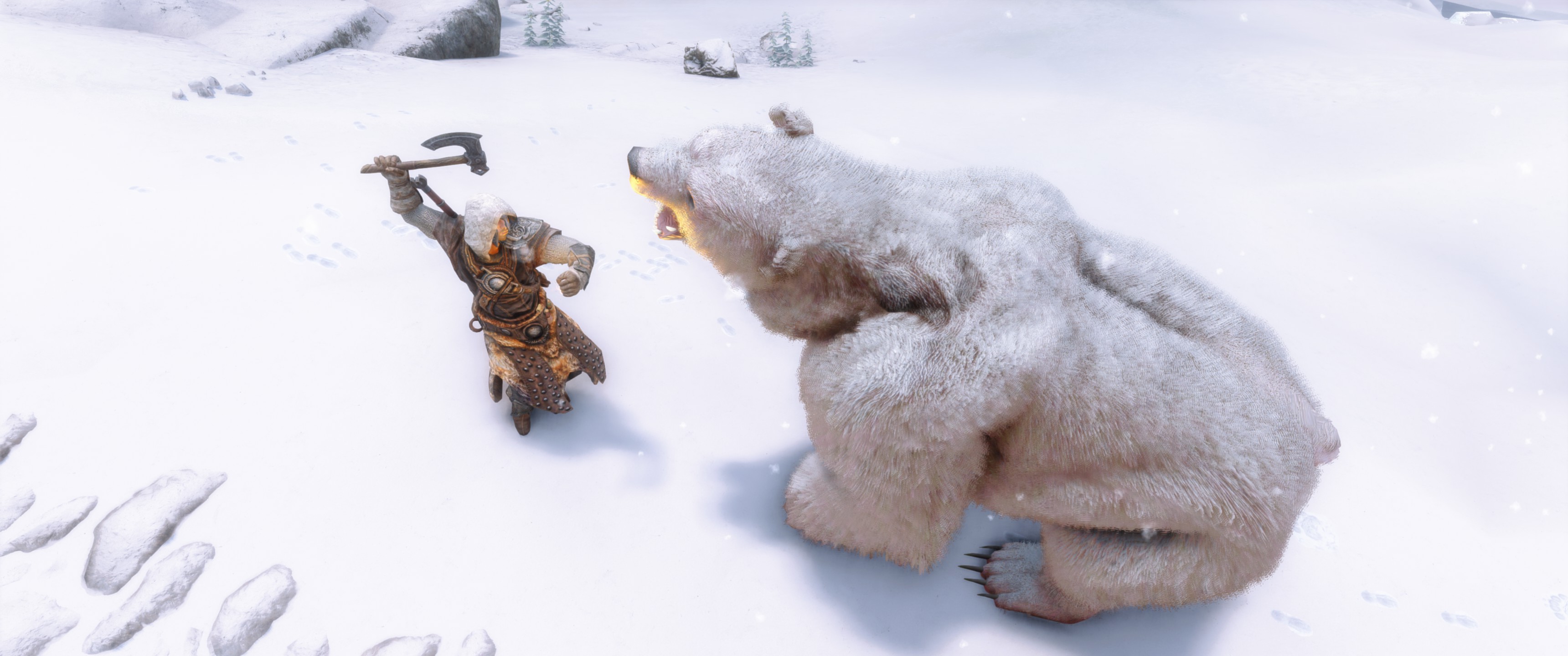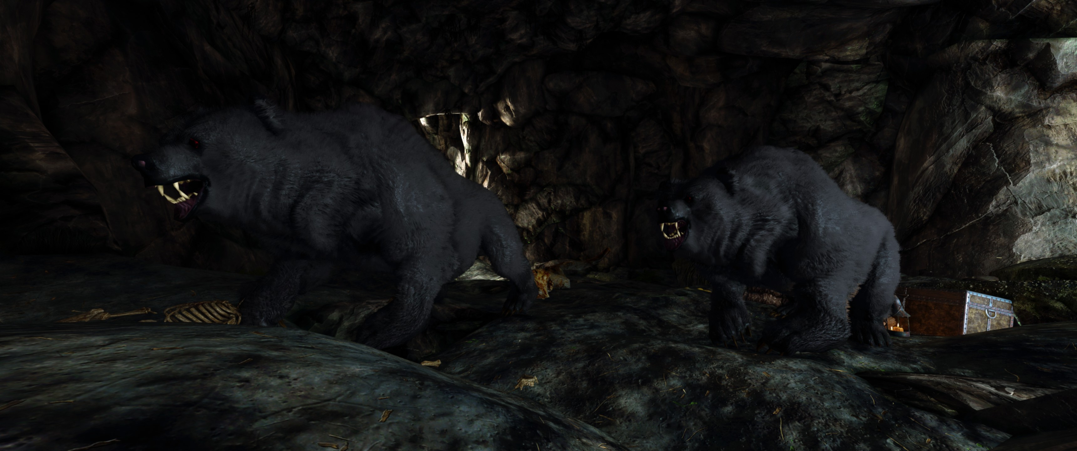 Это визуальный пересмотр медведей Скайрима. Каждый тип медведя (бурый, снежный и пещерный медведь) теперь будет иметь свои особенности. Медведи крупнее и имеют реалистичный мех, использующий текстурирование оболочки - технику, используемую в современных играх, таких как RDR2. Охотничьи трофеи также были обновлены в соответствии с новыми моделями. Загрузочный экран бурого медведя также использует улучшенную модель для соответствия новым моделям медведей.